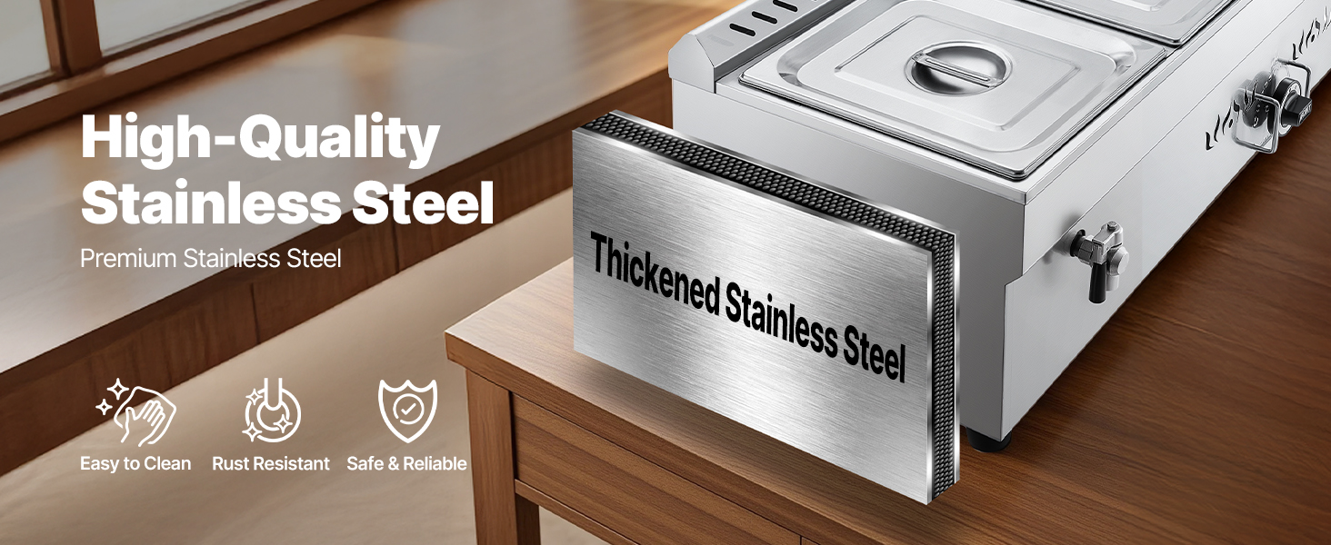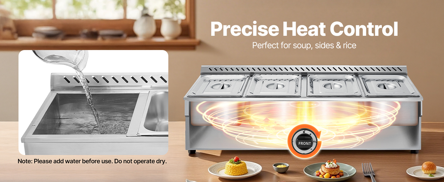- Easy Temperature Control: The rotary knob enables effortless heat adjustment to maintain food fresh and prevent drying. The outdoor steam table is perfect for rice, stir-fries, soups, and more. Note: Water is required for proper operation