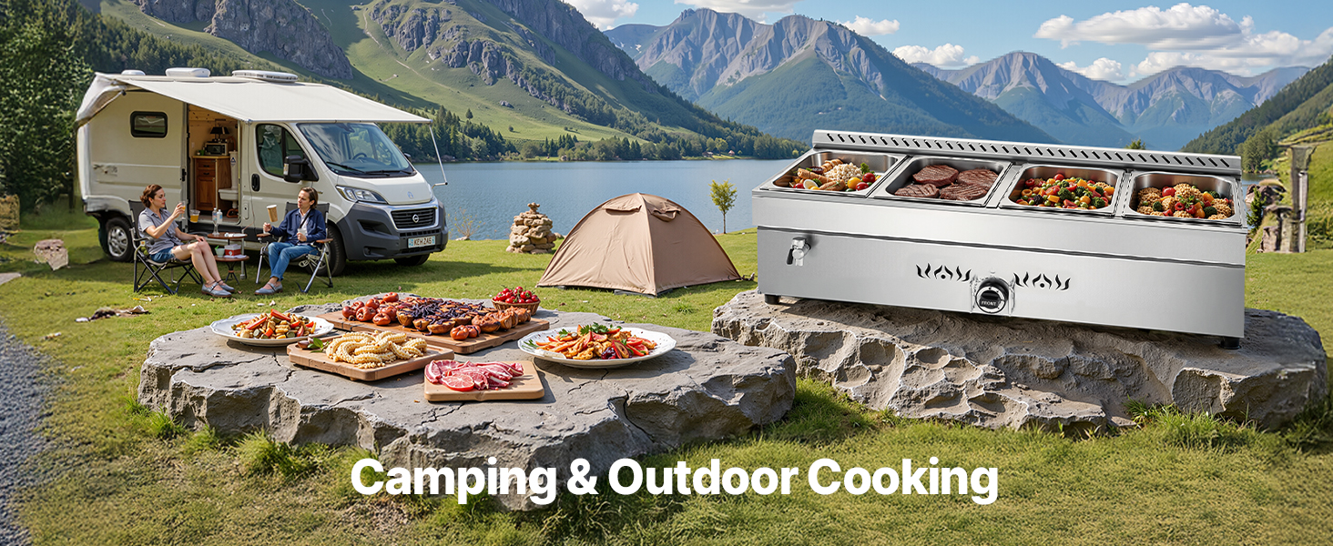 - Outdoor Use: This plug-free outdoor propane food warmer is ideal for events like garden parties, camping, and food trucks, keeping food warm and ready to serve in any outdoor setting