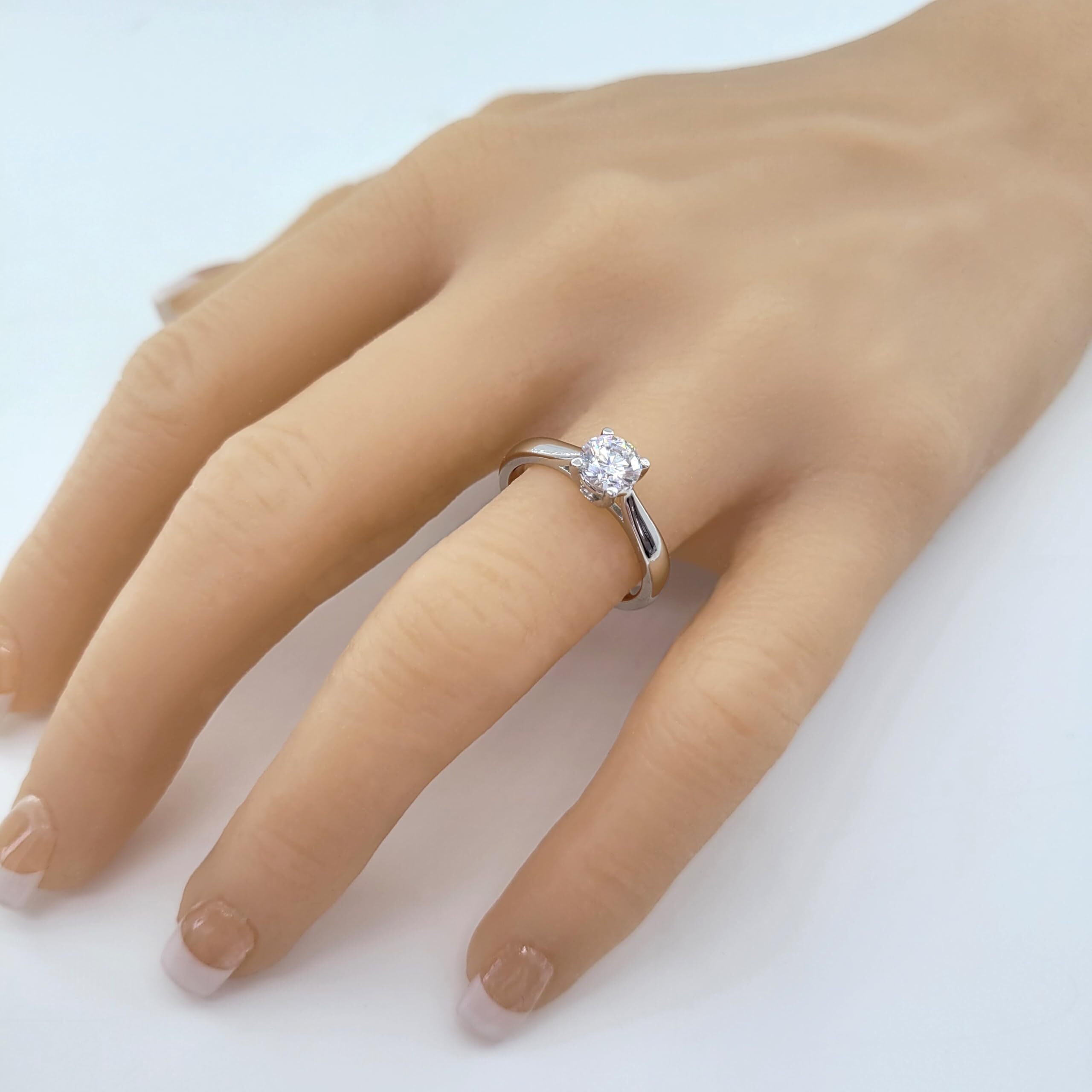 NANA Jewels Silver 6.5mm (1ct) Round Cut Zirconia Lucita Solitaire Engagement Ring-Platinum Plated-Size 8.5