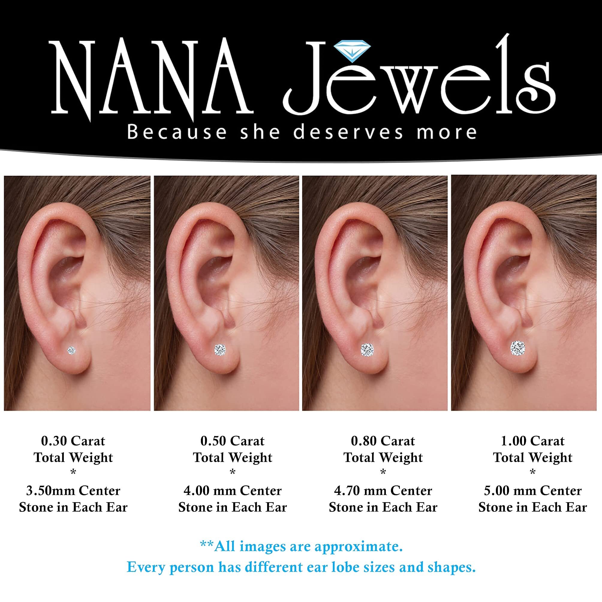 NANA Jewels Round Simulated Diamond Stud Earrings Hypoallergenic Metal & Sterling Silver CZ - 3.50mm (0.30cttw) Yellow