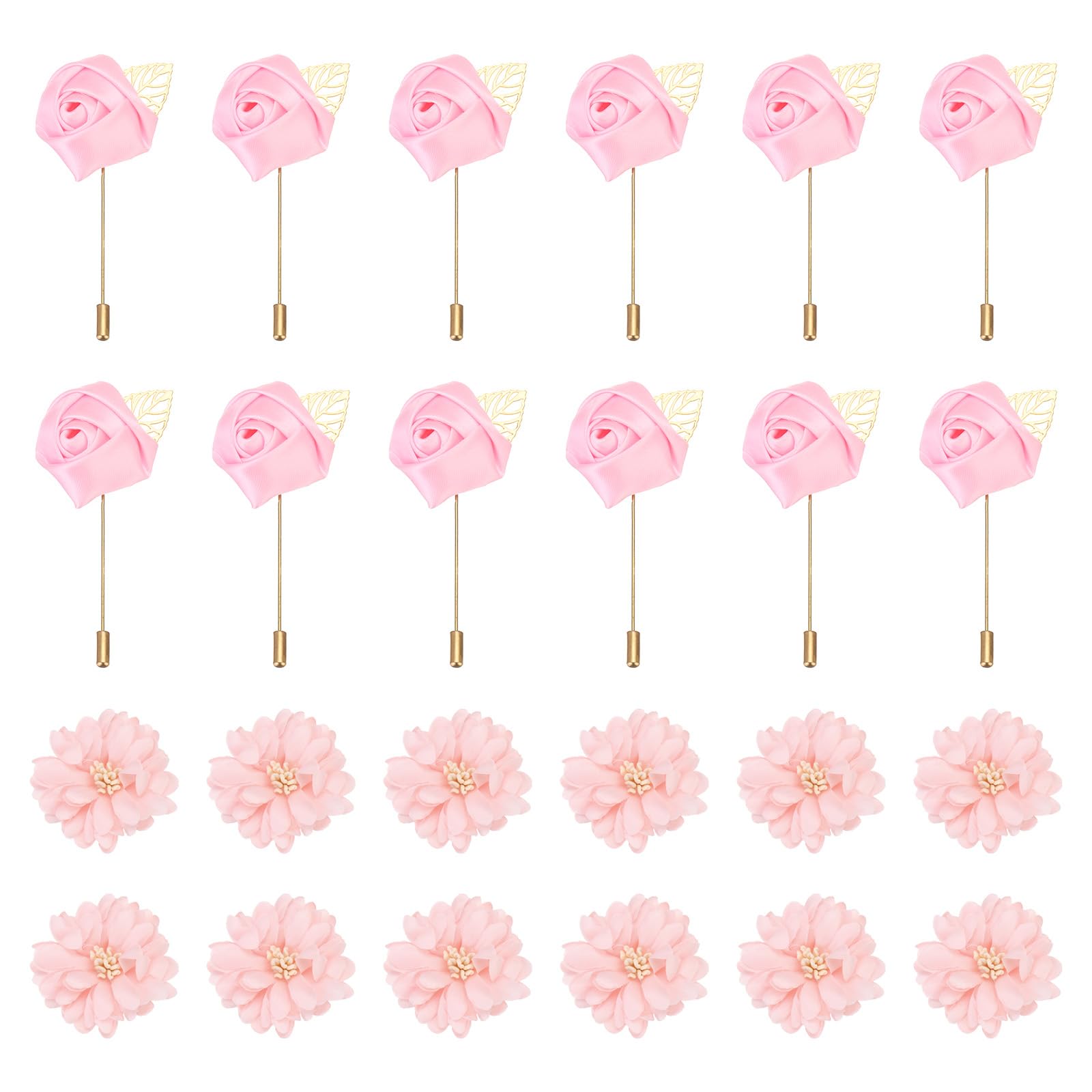 In the In the package of: 12pcs groom boutonnieres rose + 12pcs fabric flower.
