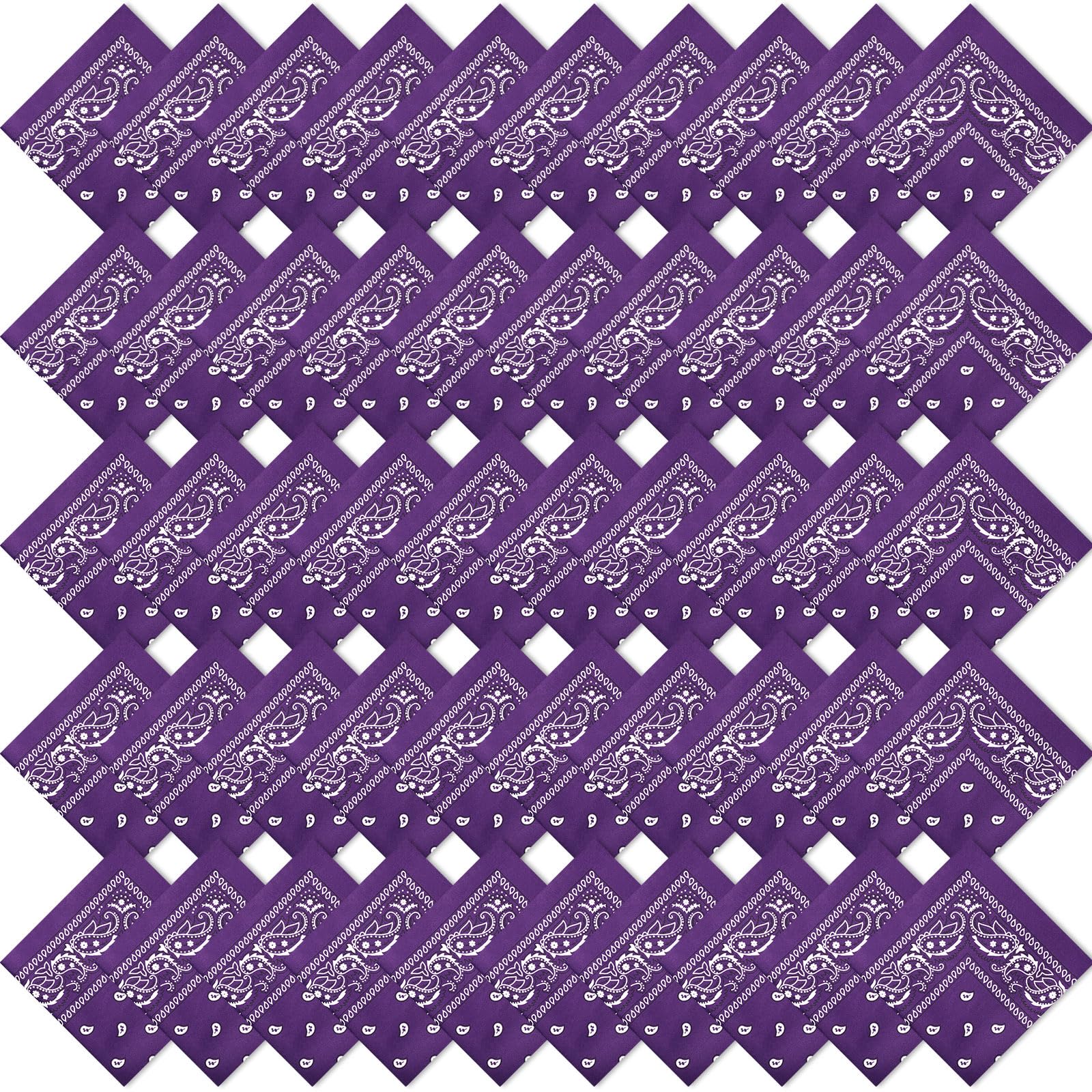50 Pcs Bandanas Paisley Cowboy Polyester Bandanas Bulk Multi Purpose Headband for Men Women Party Costume (Purple)