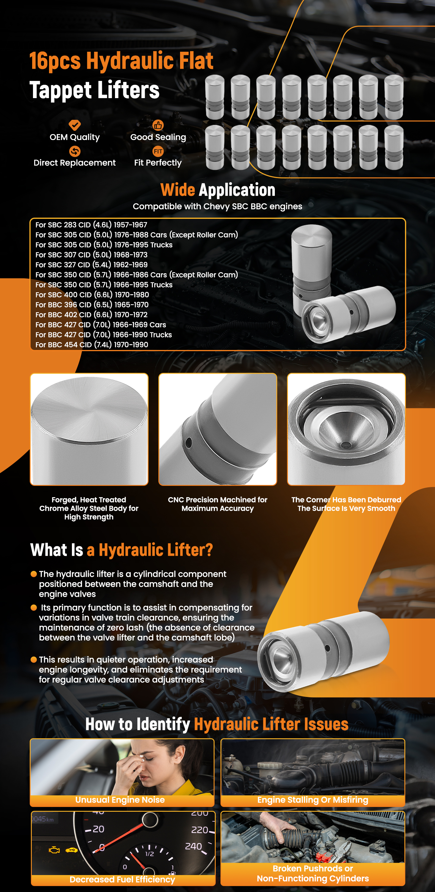 These Hydraulic lifters fit for Chevrolet SBC BBC - up to 1990