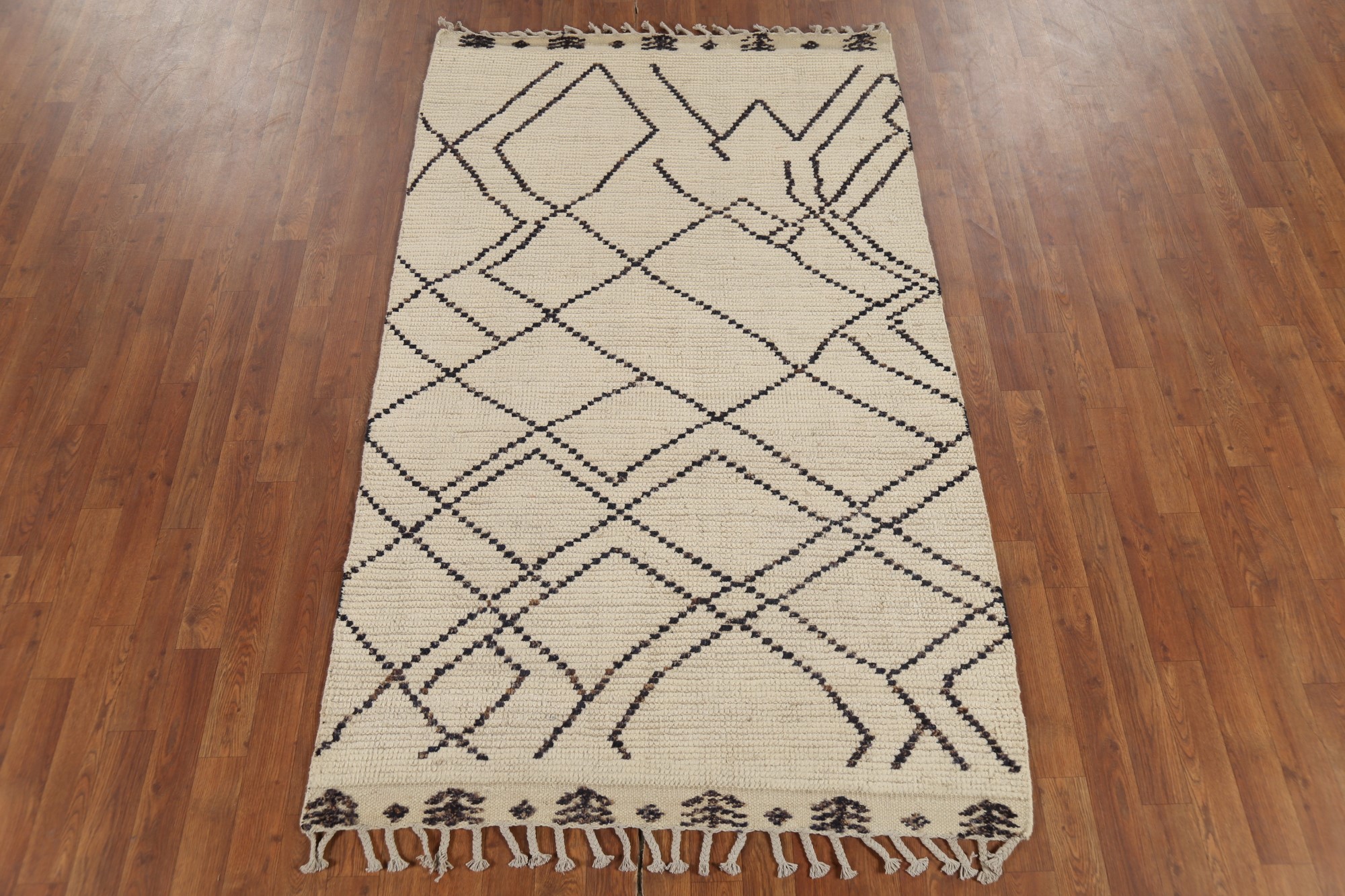 Ivory/ Brown Moroccan Oriental Rug 4x7 Geometric Pattern Handmade Wool Carpet