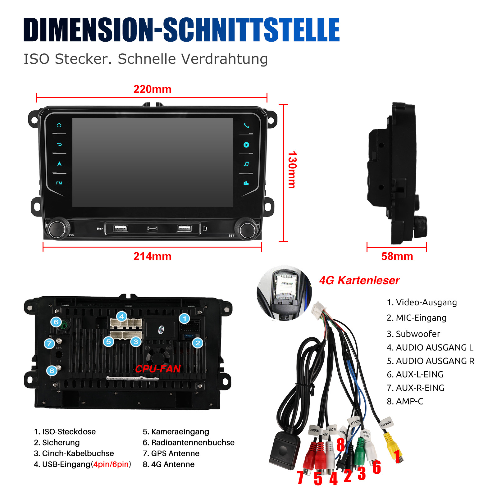 1 x RCA-Kabelbaum mit 4G-Kartenleser