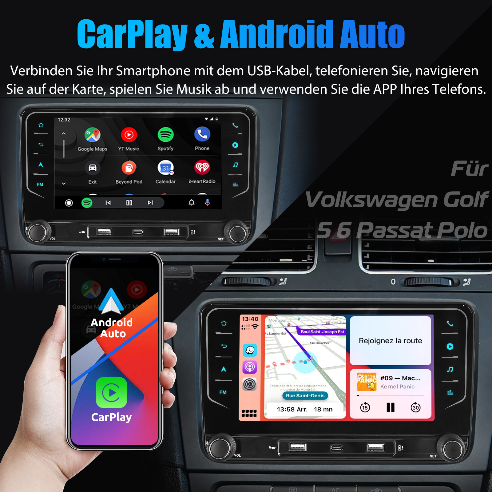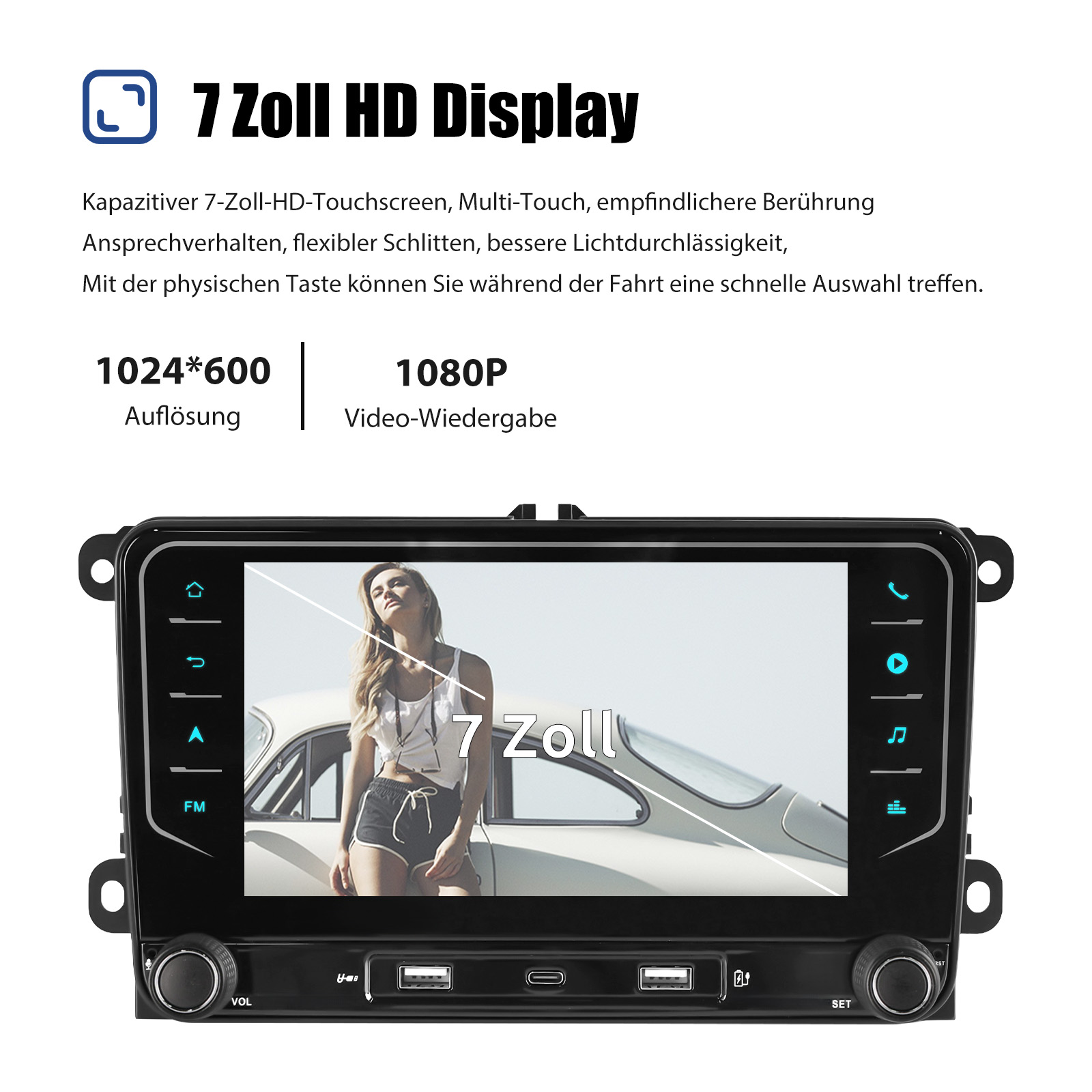 7 Zoll Android 14 Autoradio für VW/TIGUAN/GOLF/POLO/TOURAN/CADDY: Das Android Autoradio mit 7" 1024* 600 IPS kapazitivem Touchscreen, 6GB RAM und 128GB ROM ermöglicht das Herunterladen Ihrer Lieblings-Apps und -Videos, damit das Autofahren nicht mehr langweilig wird. Kein zusätzlicher Rahmen, kein Kabelwechsel, Plug and Play. Es wird mit Canbus geliefert und unterstützt die meisten Originalfunktionen: Lenkradsteuerung, Rückwärtssignale und Lesen von Original-Computerdaten usw.