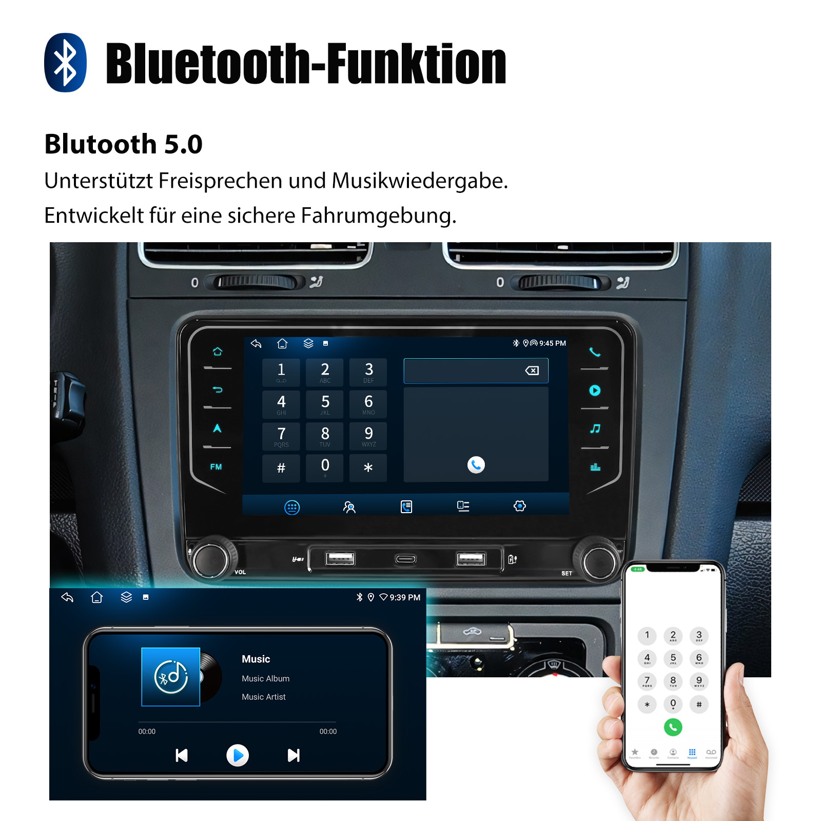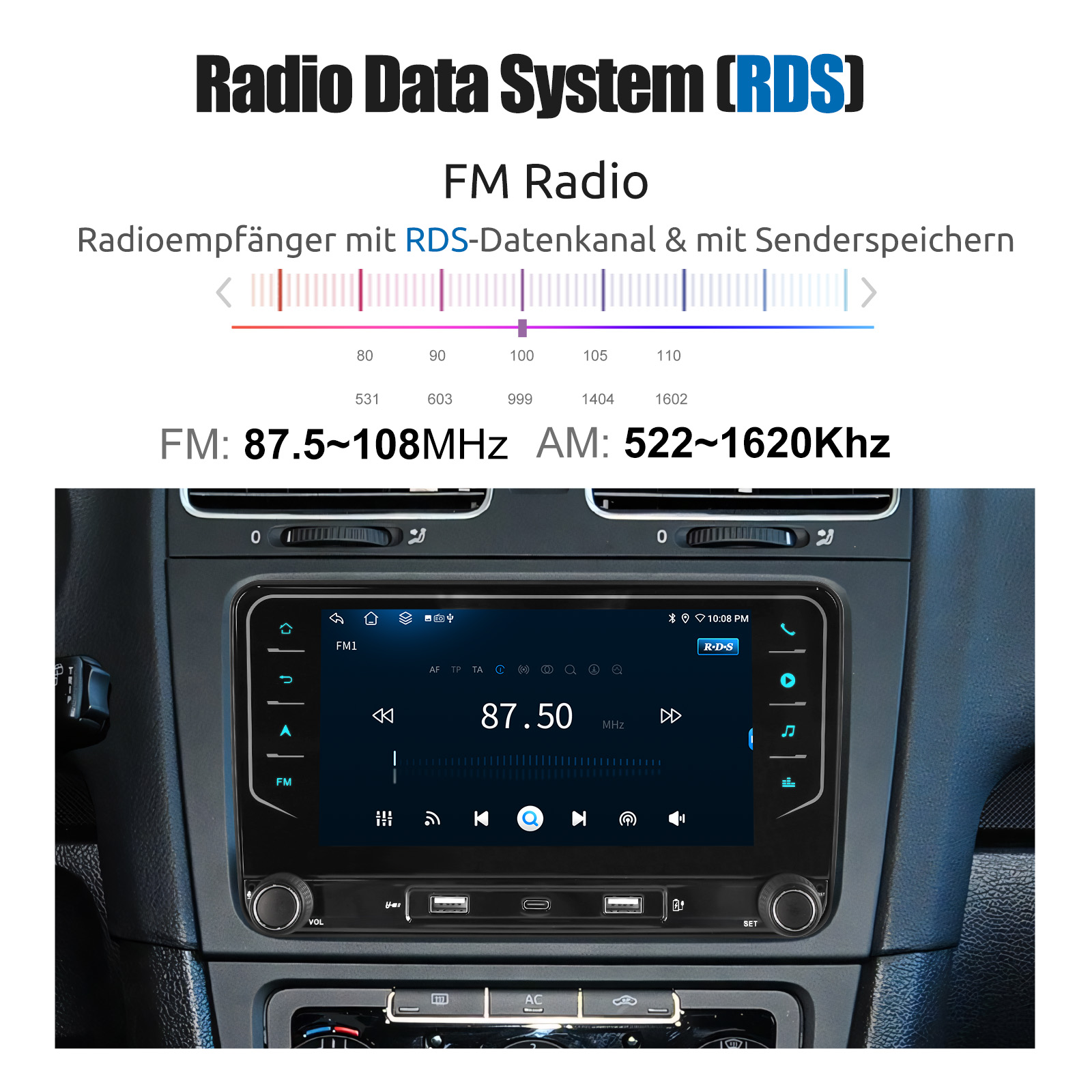 FM/AM/RDS-Radio und Bluetooth und DSP-Sound: Unterstützt Bluetooth 5.0, mit integriertem Mikrofon, damit Sie während der Fahrt freihändig telefonieren können. Unterstützt den Zugriff auf das Telefonbuch, die Musikwiedergabeschnittstelle usw. RDS unterstützt. Sie können 18 FM und 12 AM Radiosender speichern. Eingebauter DSP-Chip. Unterstützt 48-Band-EQ-Einstellung, Mit der DSP-Funktion können Sie den Klang jedes Lautsprechers mithilfe verschiedener Entzerrungsmethoden individuell anpassen: Jazz, Rock, Pop, Klassik usw., um einen außergewöhnlichen Höreffekt für Sie zu erzielen!, die nach Ihren persönlichen Vorlieben eingestellt werden kann. 4 x 45W Verstärker, Surround-Sound und Subwoofer-Ausgang.