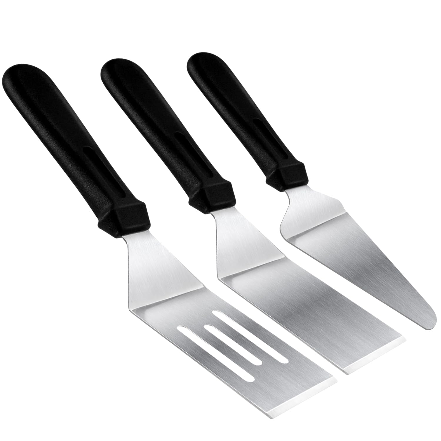 Metal Spatulas for kitchen Use, 3 PCS Professional Serving Spatula with Heat Resistant Handle, Stainless Steel Spatula Ideal for Pancakes, Eggs, Griddle Scraper, BBQ or Desserts
