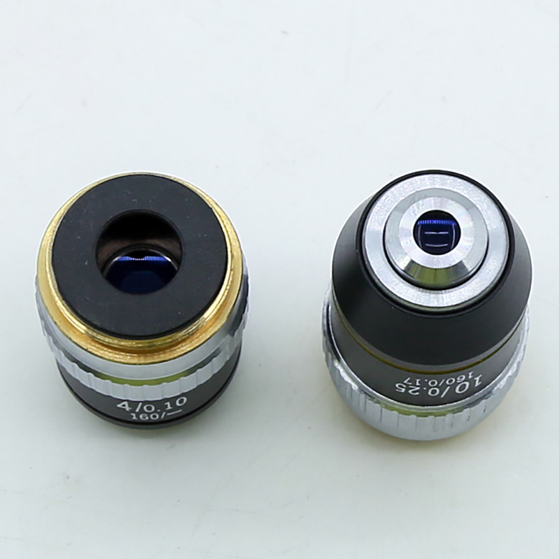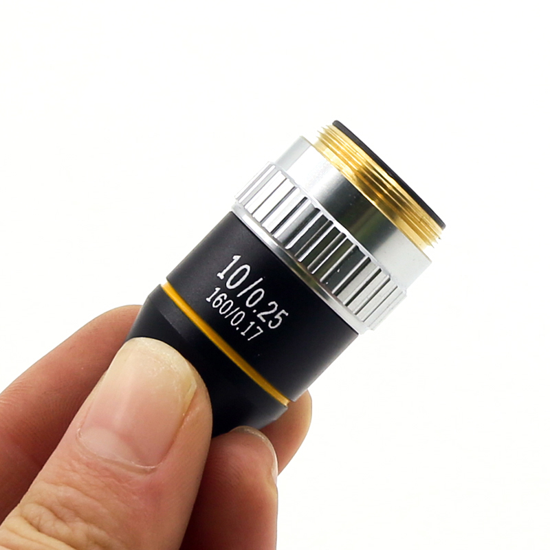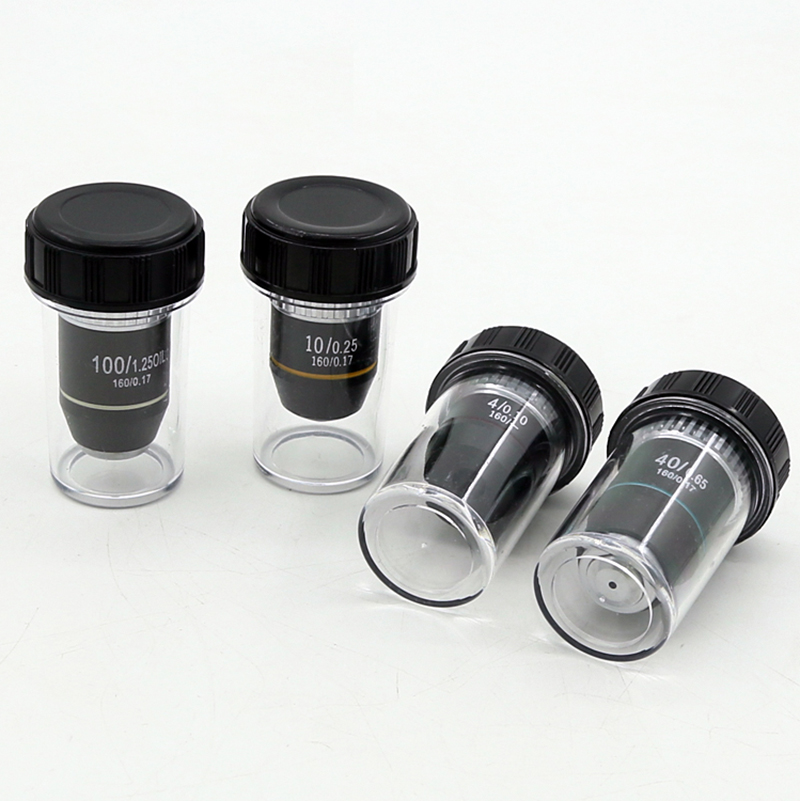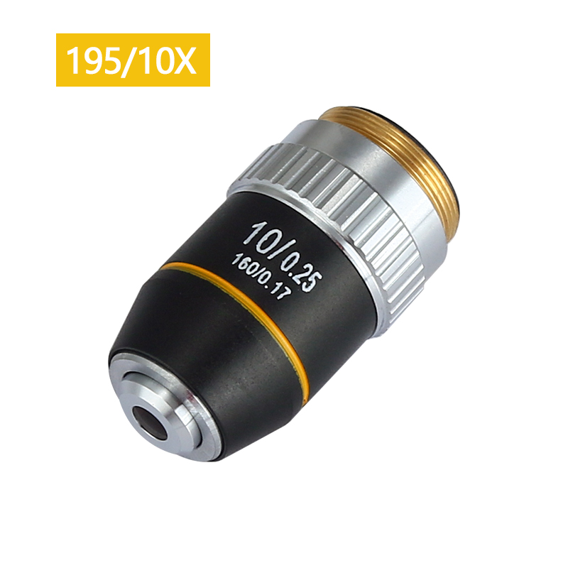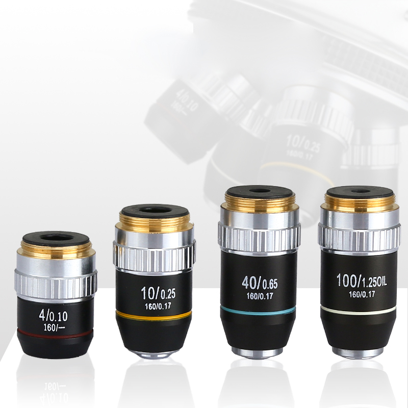 4X 10X 40X 100X Achromatic Objective Lens 195 mm Conjugate Distance HD DIN for Biological Microscope 160/0.17 Description: