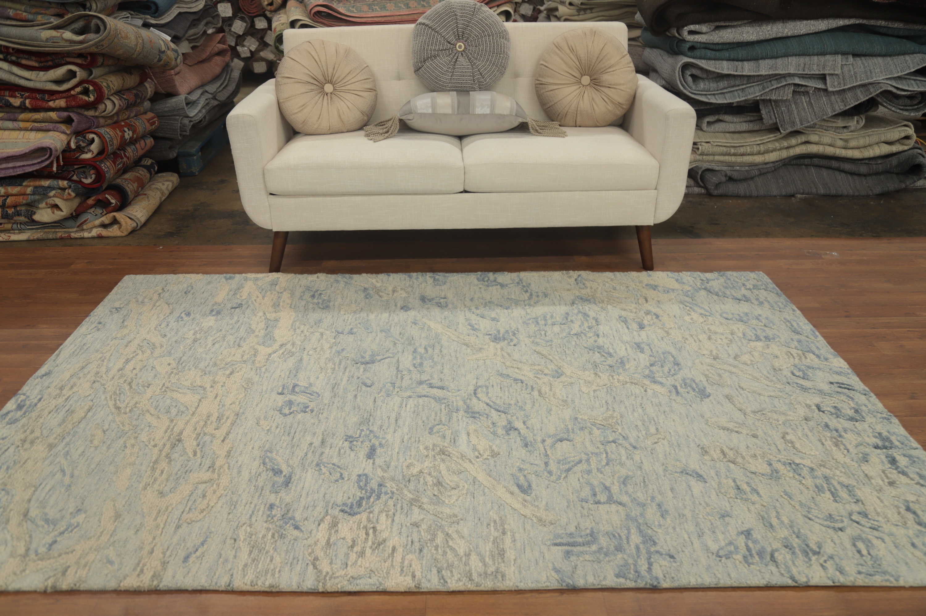 Serene Swirls Abstract Area Rug 5x8 Modern Artistic Hand Tufted Oriental Carpet