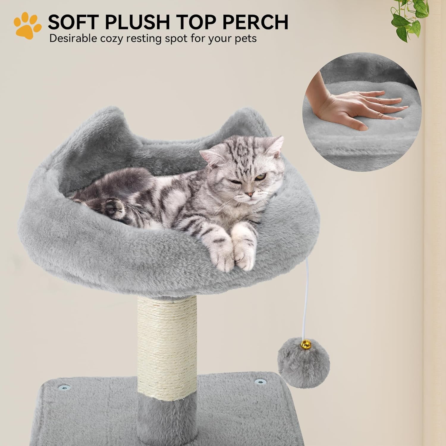 🐈The top perch, lavishly padded for ultimate comfort, ensures your furry friend's blissful lounging.