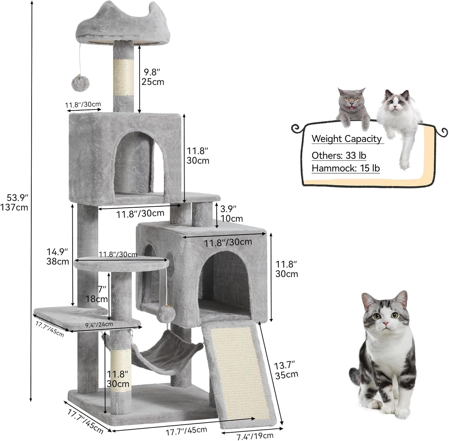 🐈Designed for large cats, our activity center features spacious kitten houses for play and relaxation.