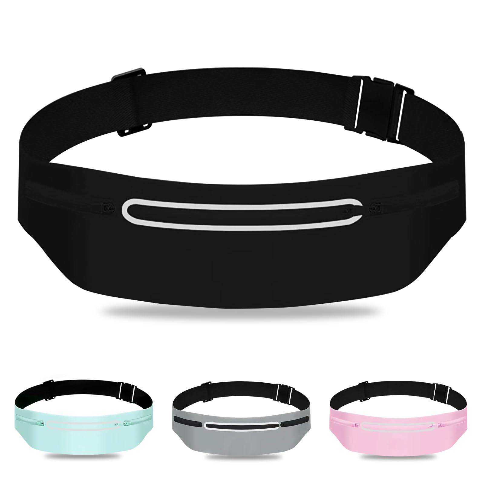 Ultra Light & No Slip & Adjustable StrapThis belt bag is ultra slim and lightweight. The high elastic waist belt strap is flexible and adjustable. Stretch can comfortably snug, quick release buckles allow easy access to adjust the belt’s length to fit your waist and take on/off. No Bouncing, No Chafing, No Clutter and No Slipping during long run or intense workout.