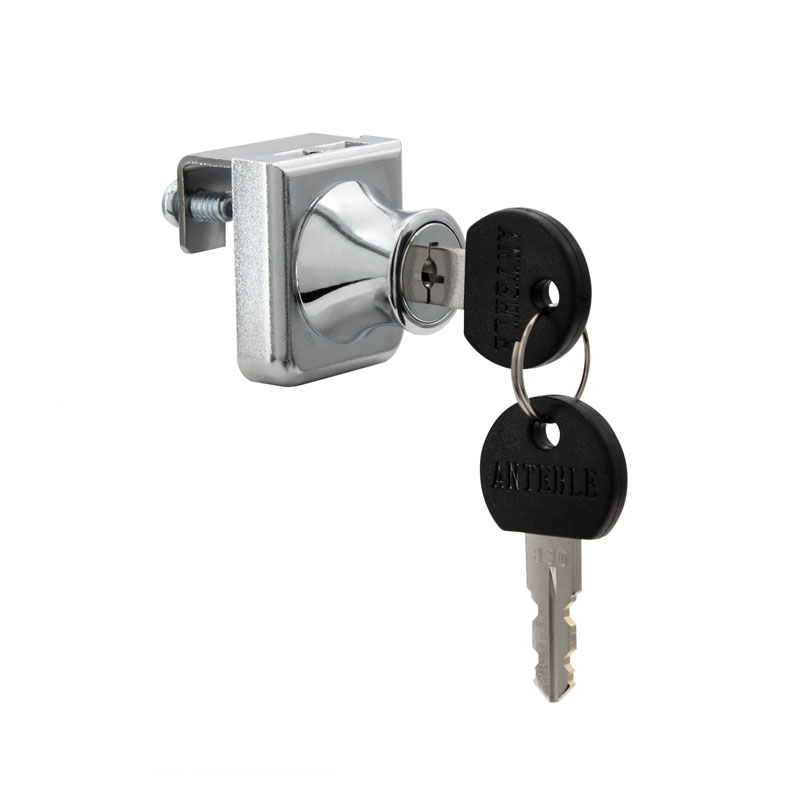 | description | Clamp-On Lock for Single Cabinet Swing Door for 1/4" Glass - Randomly Keyed |