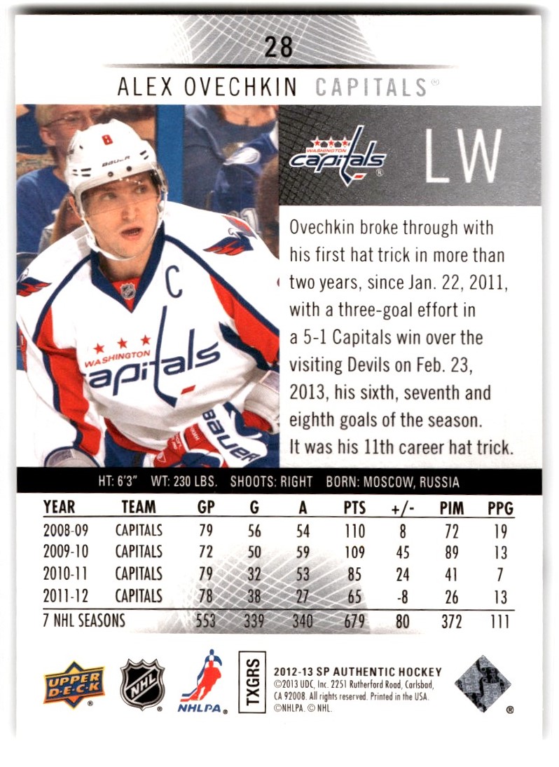 | Alexander Ovechkin 2012-13 SP Authentic #28 Washington Capitals | ||||||||||||||||