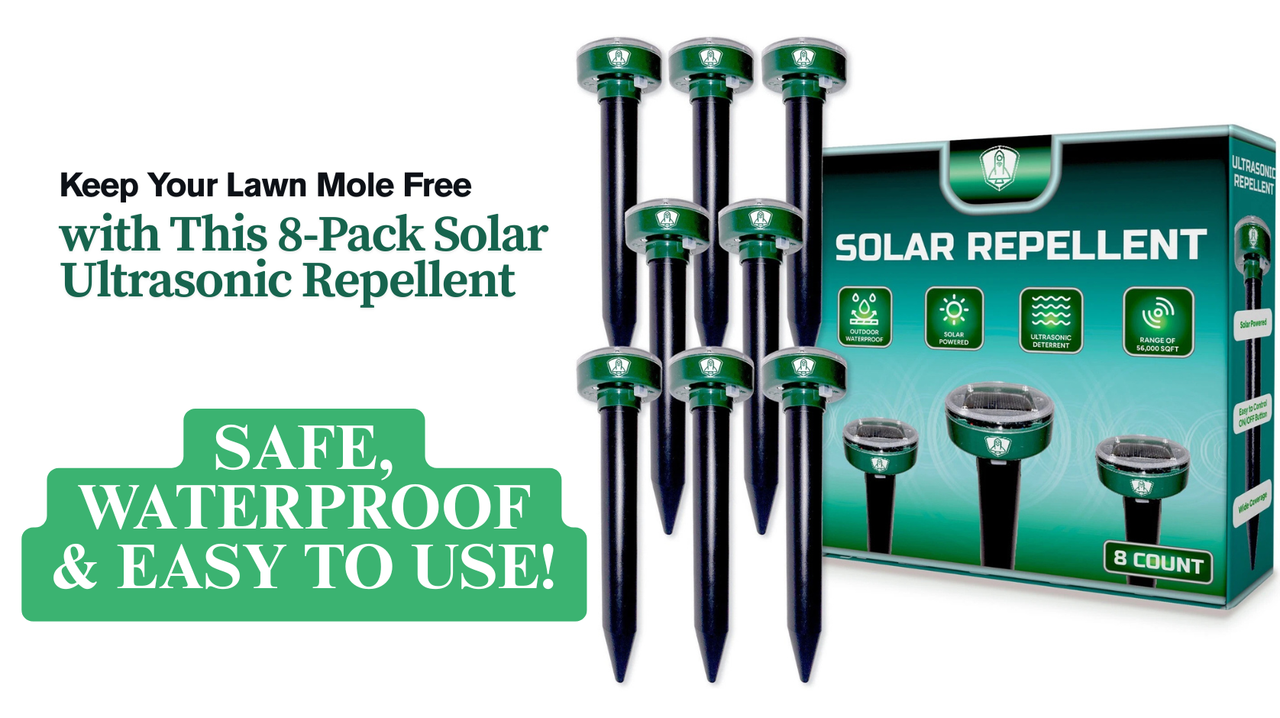 Each solar mole repellent covers up to 7,000 square feet of open ground.