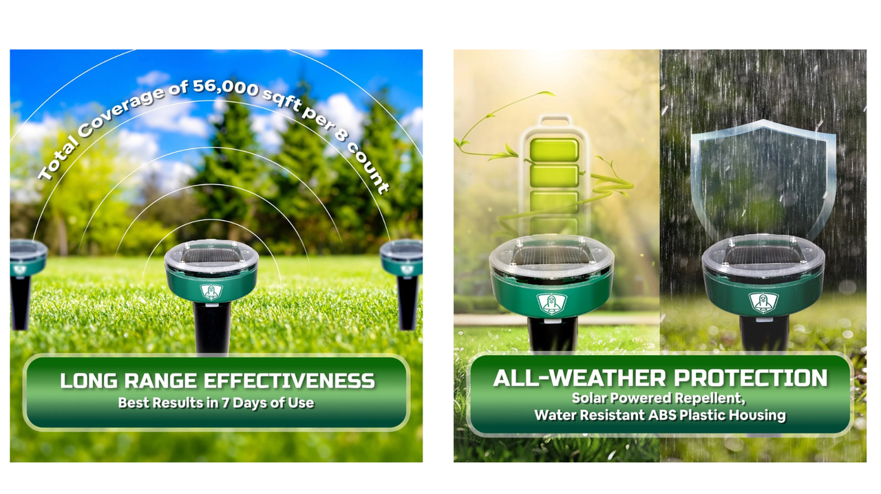 โ๏ธ Allow the unit to charge in sunlightโfor best results, leave the device active for at least 7 days to disrupt pest patterns and protect your soil.