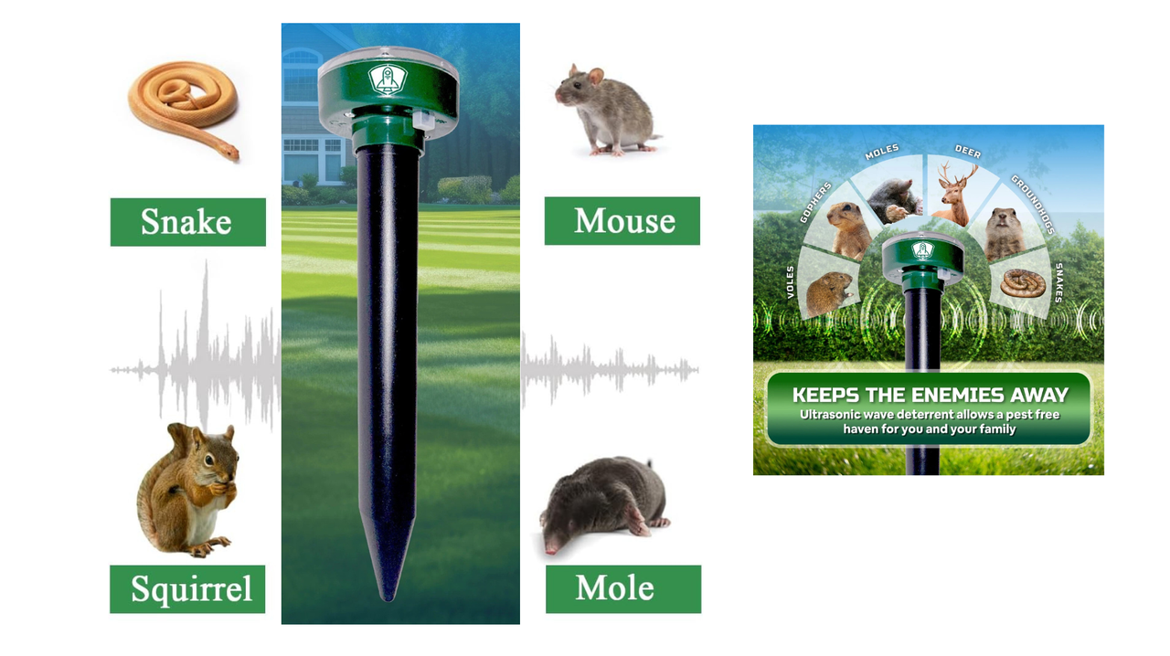 This solar-powered repellent emits ultrasonic pulses that penetrate the ground, creating vibrations and frequencies that naturally drive away burrowing pests like moles, voles, gophers, and groundhogs. These animals are extremely sensitive to sound and vibrations, making this an effective and humane deterrent.