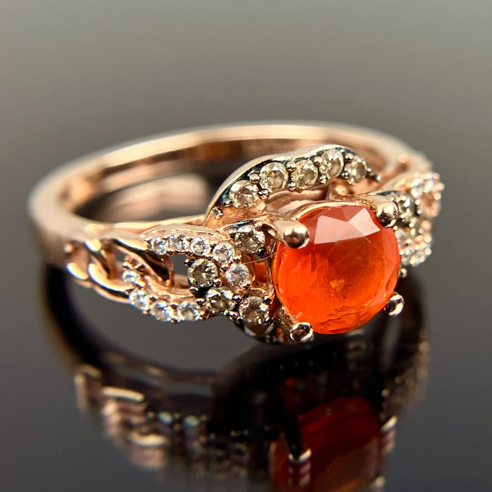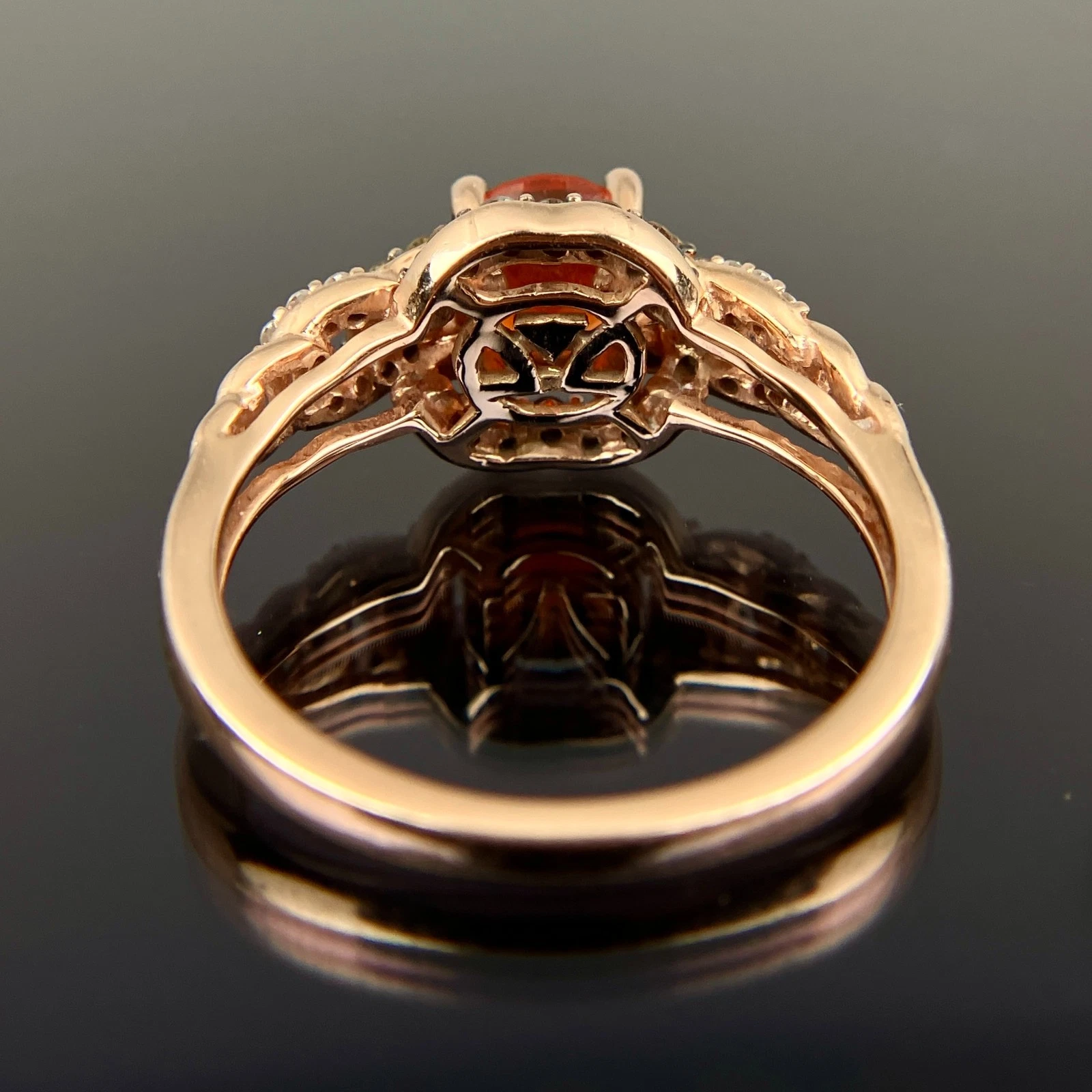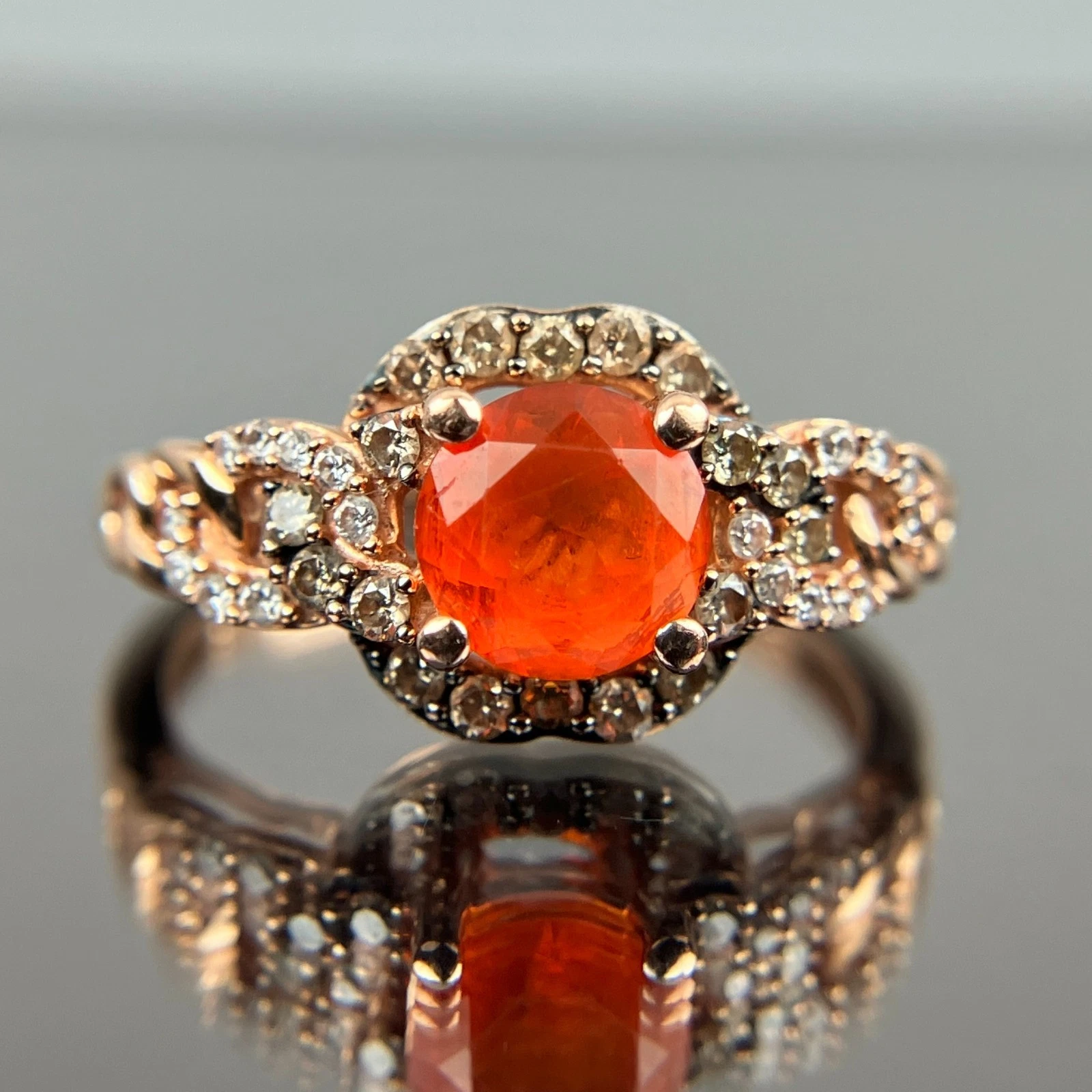Le Vian 14k White Chocolate Diamond & Fire Opal Rose Gold Ring Size 6.75, 3.5 Grams, 0.81 Carats