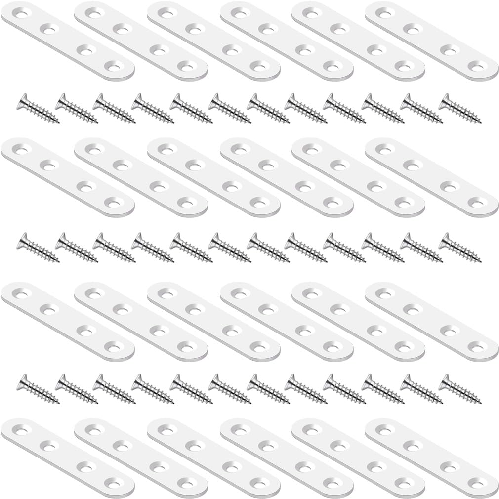 - PACKAGE INCLUDES: 24 Pcs White straight brackets, 96 Pcs Stainless steel screws. Meet your daily requirements to make furniture parts stay firm.