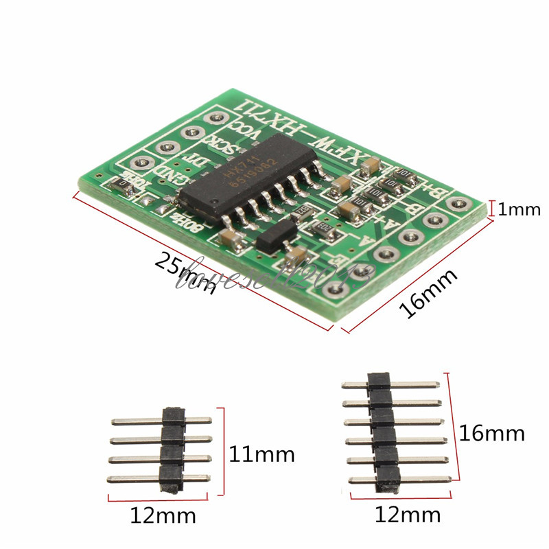 This module uses 24 high-precision A / D converter chip hx711, is designed for high-precision electronic scale and design, with two analog channel input, the internal integration of a gain programmable amplifier 128. Input circuit can be configured to provide an electrical bridge bridge voltage (such as pressure, weight) sensor model is an ideal high-precision, low-cost sampling front-end module• Two selectable differential input channels