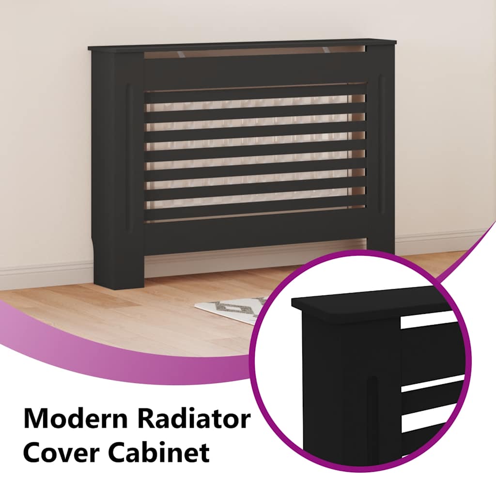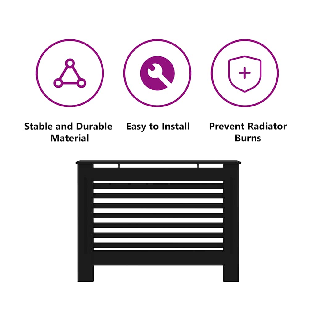 This radiator cover is designed to give your radiator a decorative function and some additional shelf space for books, photo frames, ornaments, etc. It will make a great addition to your living room. Stable and Durable Material: Engineered wood is a durable and stable material with a smooth surface that is warping, and splitting, making it a reliable choice for a variety of projects Protection: The radiator cover is built with your family's safety as a top priority. It effectively shields hot surfaces, reducing the risk of burns, especially for children and pets. The cover not only enhances your home's aesthetic but also goes towards a safer environment by preventing direct contact with the radiator Display Function: The top shelf of the radiator cover offers a stylish and practical solution for additional storage and display. It provides ample space to showcase books, photo frames, and decorative items Modern Slatted Design: Showcases a modern horizontal slatted design that makes it versatile for any room. Its finish accentuates the overall aesthetic, making it a standout piece Easy Assembly: This MDF radiator cover is designed to make assembly effortless with clear, step-by-step instructions You’ll find putting it together to be simple and enjoyable Color: Black Material: MDF with water base laqucer finish Outer dimensions: 44.1" x 7.5" x 32.1" (W x D x H) Inner dimensions: 42.1" x 6.7" x 31.5" (W x D x H) With horizontal slats Assembly required: Yes California Proposition 65<p>Radiator Cover, Radiator Covers, Radiator Cover, Radiator Covers, Radiator Cover Cabinet, Radiator Cover Cabinets, Heater Cover, Heater Covers, Heating Cover, Heating Covers, Heating Radiator Cover, Heating Radiator Covers, Heater Shelf, Heater Shelves, Heating Cover Shelf, Heating Cover Shelves</p>