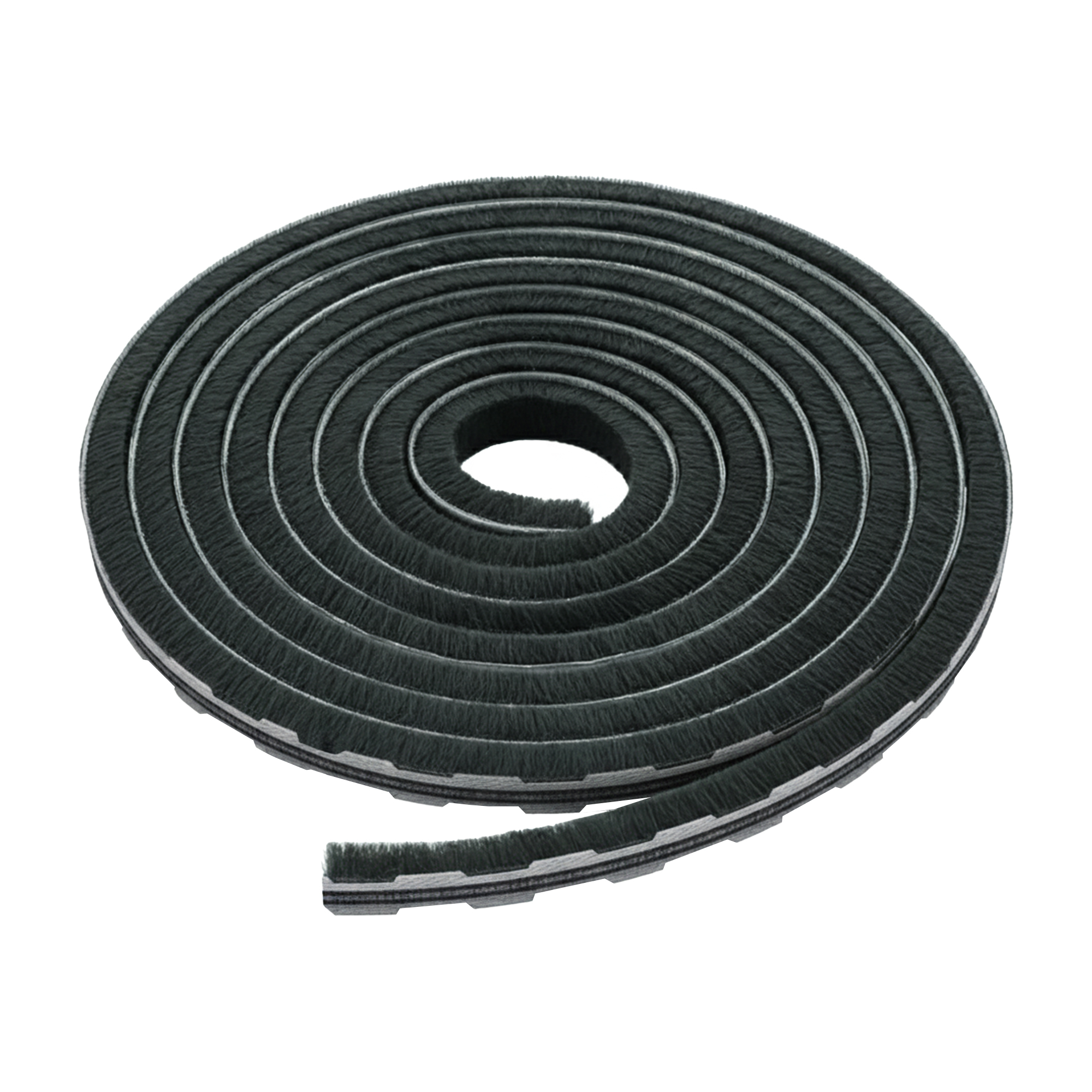 The Brixwell Zipper Pile Weatherstrip is designed to help reduce air, moisture, and noise around doors and windows. It features a 0.350" pile height and a 0.270" backing width and is supplied in a 100' roll that can be cut to fit a variety of door or window frames. Commonly used in residential and commercial settings, this pile weatherstrip fits into channels in sliding or hinged doors and window sashes where a compressible seal is needed. The pile compresses when closed, creating a consistent barrier to help block unwanted elements from entering indoor spaces. It is also suitable for use as a door brush strip in areas requiring additional insulation. The gray finish blends with a wide range of frame finish. This weatherstrip can be used as a replacement for worn seals or installed on new doors and windows to support common weatherization tasks where gap sealing is needed for airflow and comfort control. Its flexible construction allows easy trimming and installation, offering a straightforward sealing solution for ongoing maintenance or new construction needs.