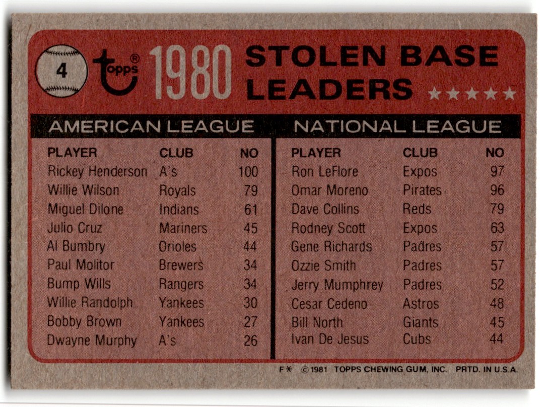 | Rickey Henderson/Ron LeFlore 1981 Topps #4 | ||||||||||||||