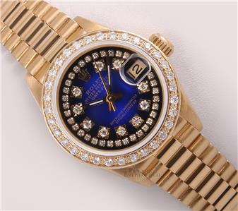 | DIAL | Custom Blue Vignette Dial with String Diamond and Diamond Hour Markers (VS G-H color) |