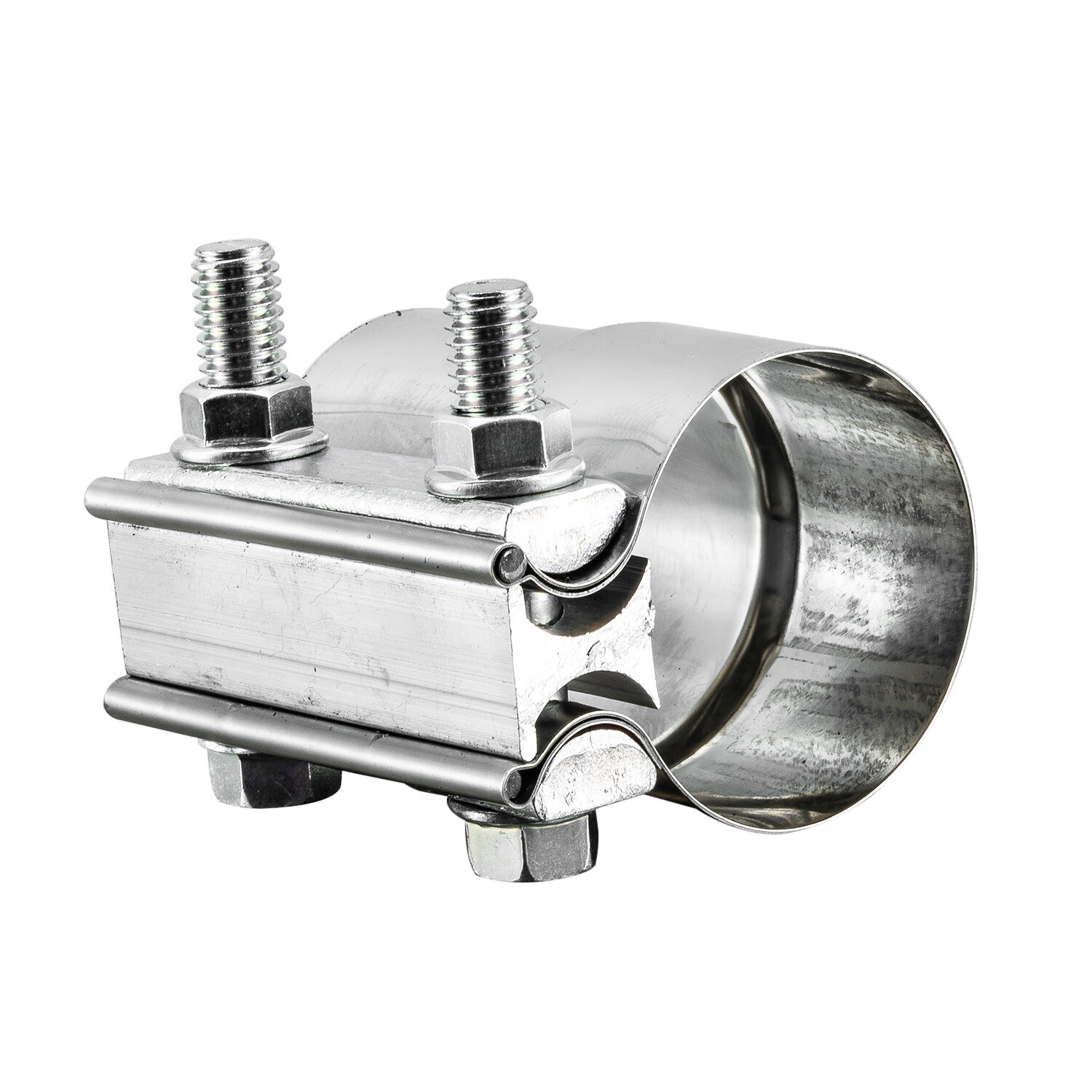 Size: joins 2.0" OD pipe to 2.0" ID pipe, width of strap: 2.94inch /74.82mm. Application: Lap joint clamp is a simple, effective way to connect exhaust system components such as pipes, mufflers, catalytic converters etc. Advantage: Made from high quality T304 Stainless Steel No welding design, easy to install or remove. It is recommended that put exhaust sealant on the pipes before installation. Material: 304 stainless steel band, zinc-plated M10 bolt and nut, steel gasket, aluminum alloy I-block. Feature: The band clamps make the force of 360 evenly distributed to provide a seal. Torque: 63 N·m.