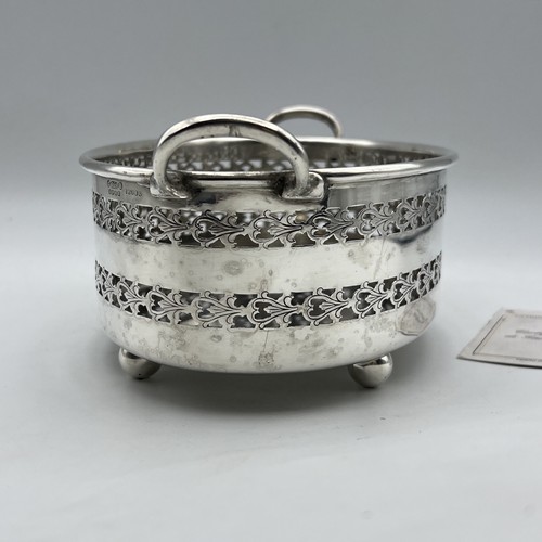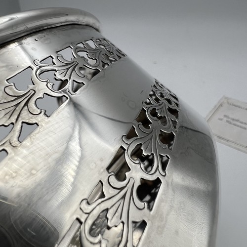 Delizioso cestino jardiniere in silver plated di manifattura inglese prodotto negli nni ’40   come testimonia la punzonatura presente sulla fascia laterale.