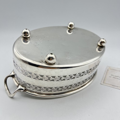 ✅ Delizioso cestino jardiniere in silver plated di manifattura inglese prodotto negli nni ’40 come testimonia la punzonatura presente sulla fascia laterale. L'articolo è impreziosito da un bordo con lavorazione a traforo e munito di due manici. L’oggetto presenta dei segni di usura sulla patina dovuti al tempo e all’uso. Le macchie nere in foto sono dovute ai riflessi. Corredato da Certificato di Autenticità Dimensioni: Larghezza massima con manici cm 24 Cm 15 x cm 20 altezza cm 9 Peso 317 gr Prezzo € 60