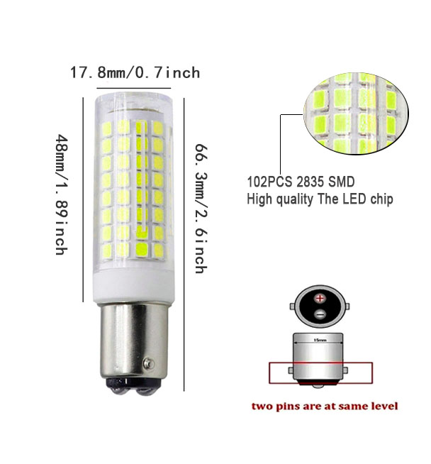 Great replacement for T3/T4/C7/S6 BA15D Halogen Bulbs. Also suitable for replacing traditional sewing machine bulbs.