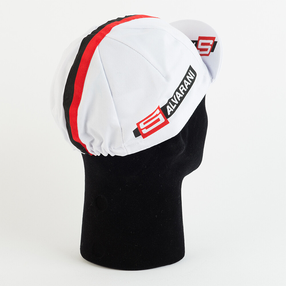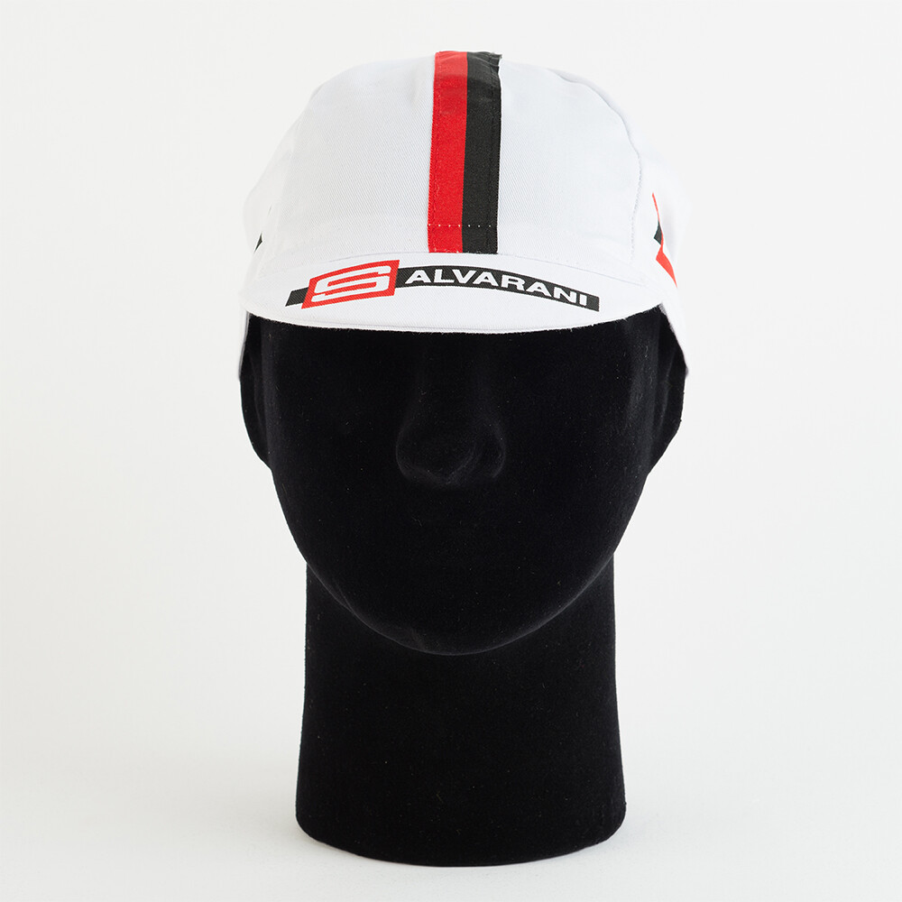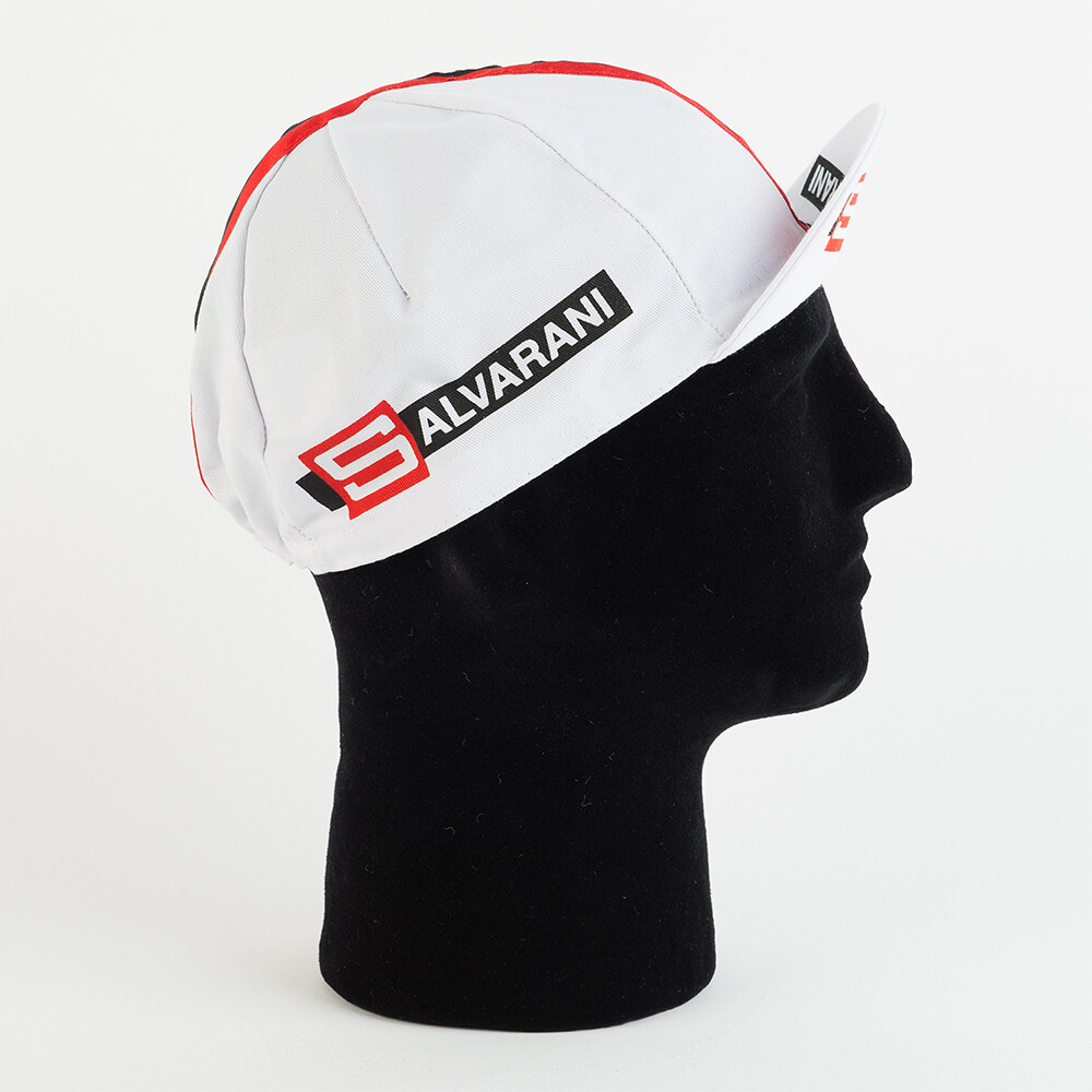 Printed with vintage Salvarani Cycling Team design that can go with any jersey, this cap is the perfect accessory for a classic retro look! It?s comfortable to wear and fits under helmet! One size fits all - the elastic adjusts to fit head size. Its band will keep the sweat from your eyes and the peak provides UV protection.