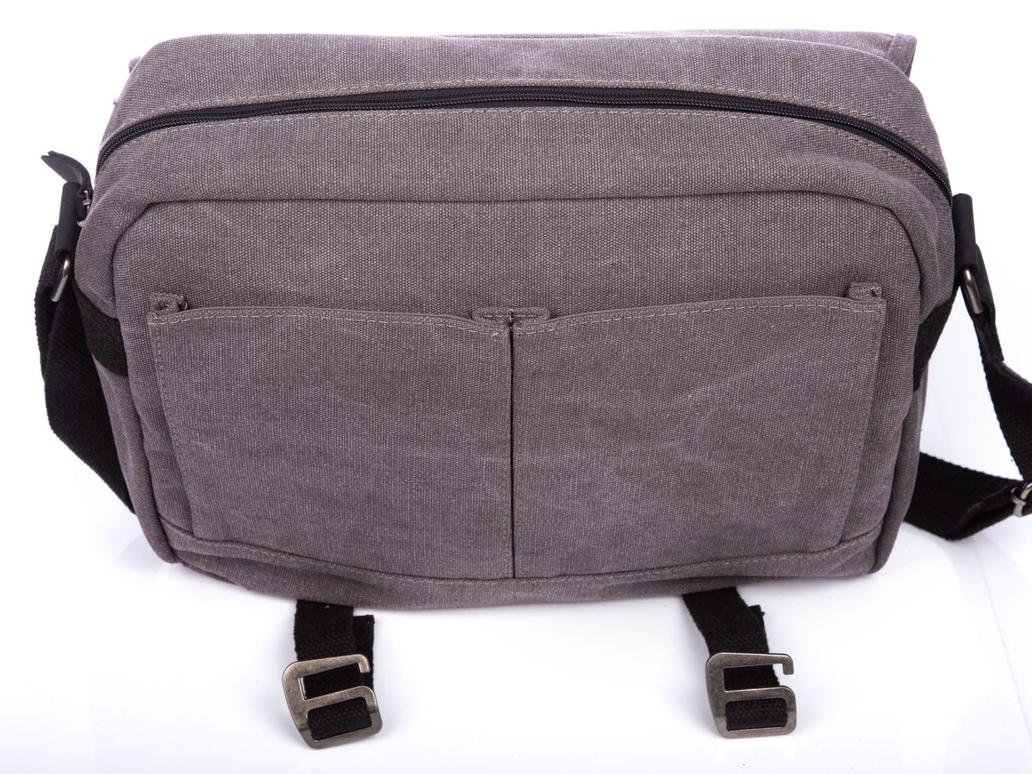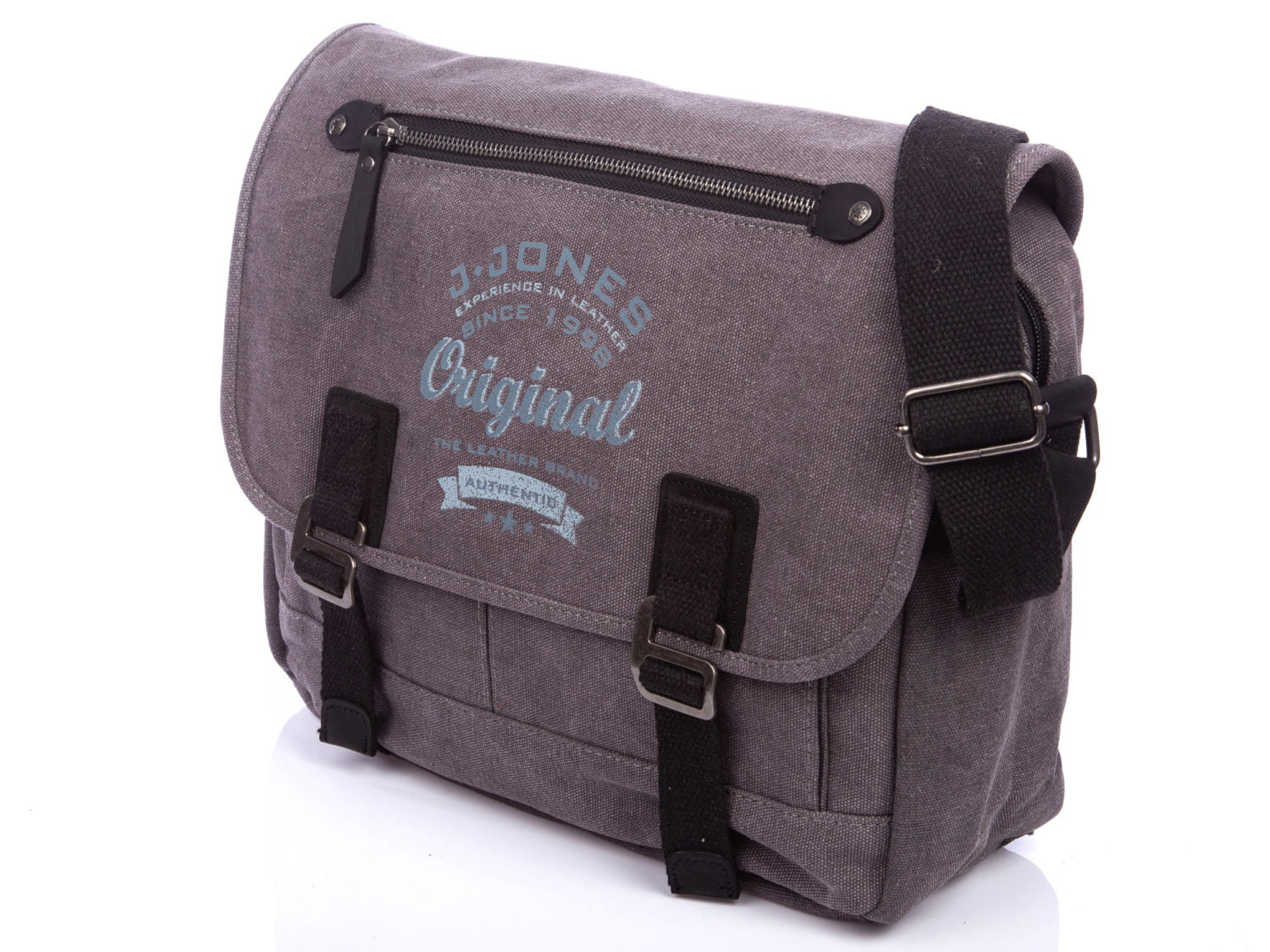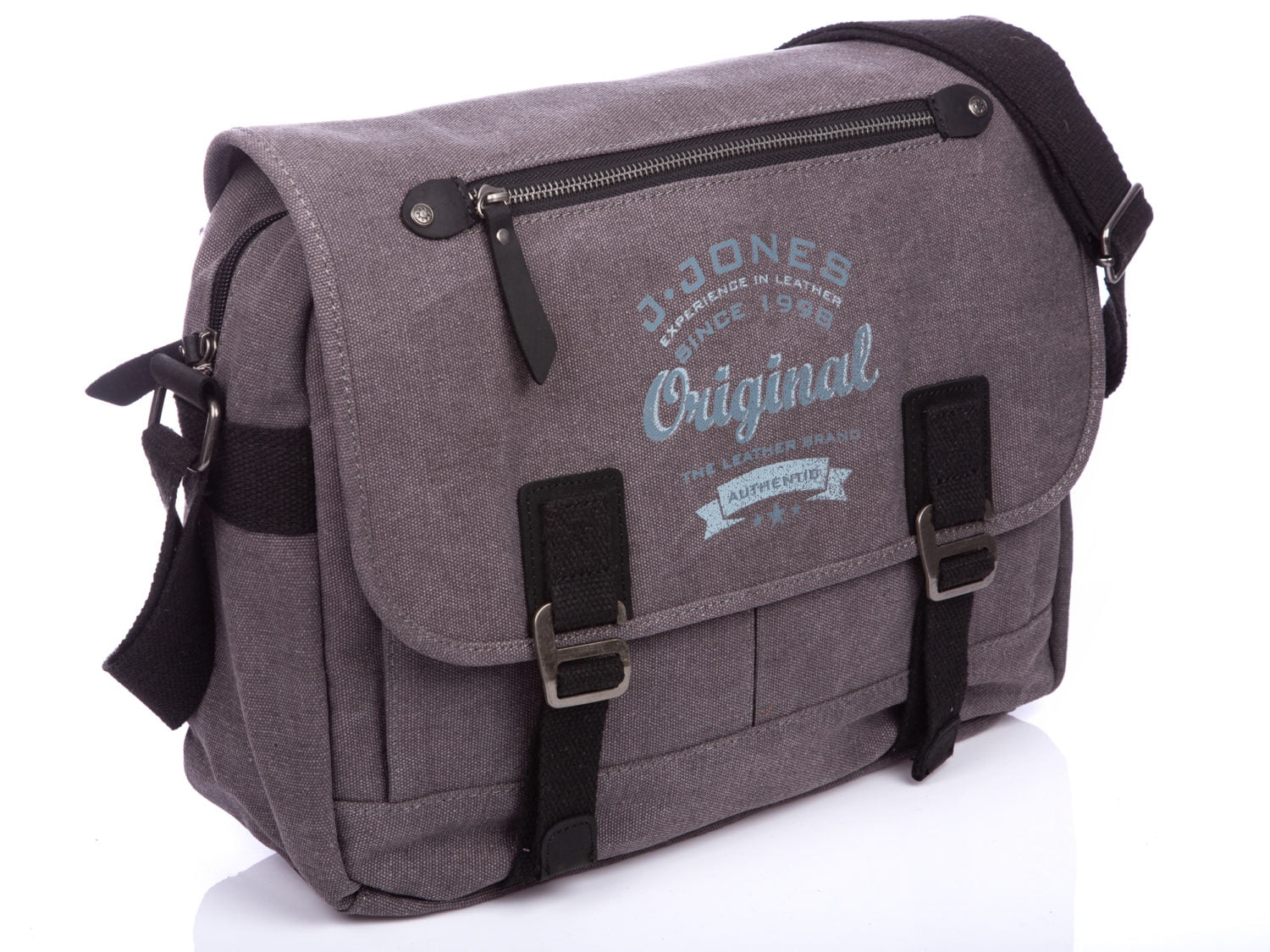 J Jones Herren-Schultertasche Canvas & Echtleder grau A4 groß