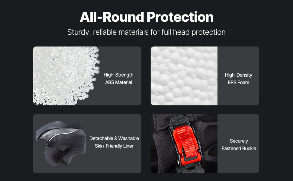 DOT Certified: This motorcycle helmet is DOT approved, meeting U.S. regulatory standards. Its sturdy ABS shell, combined with soft EPS foam and a skin-friendly liner, provides complete head protection for safe riding