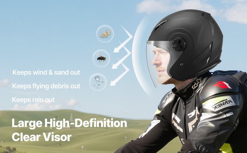 The motocross helmet comes with a large, clear visor that blocks wind, sand, and flying debris when closed. Open it for added airflow and enjoy a comfortable ride.