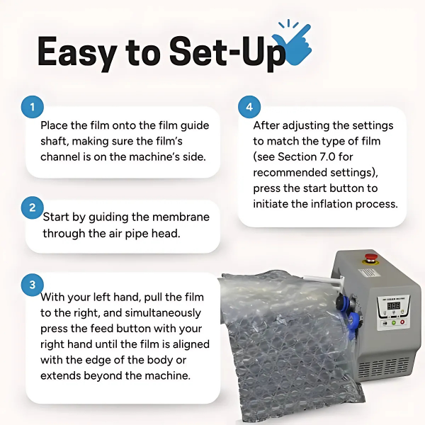 The Premium Air Cushion Machine D-60 is a high-strength engineering metal with a long service life. It’s portable, with a clear operation interface that is compatible with different types of inflatable bags.