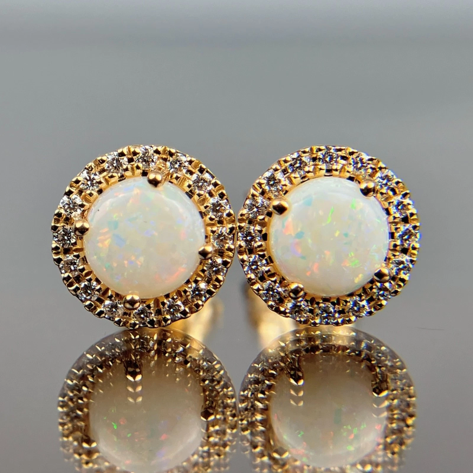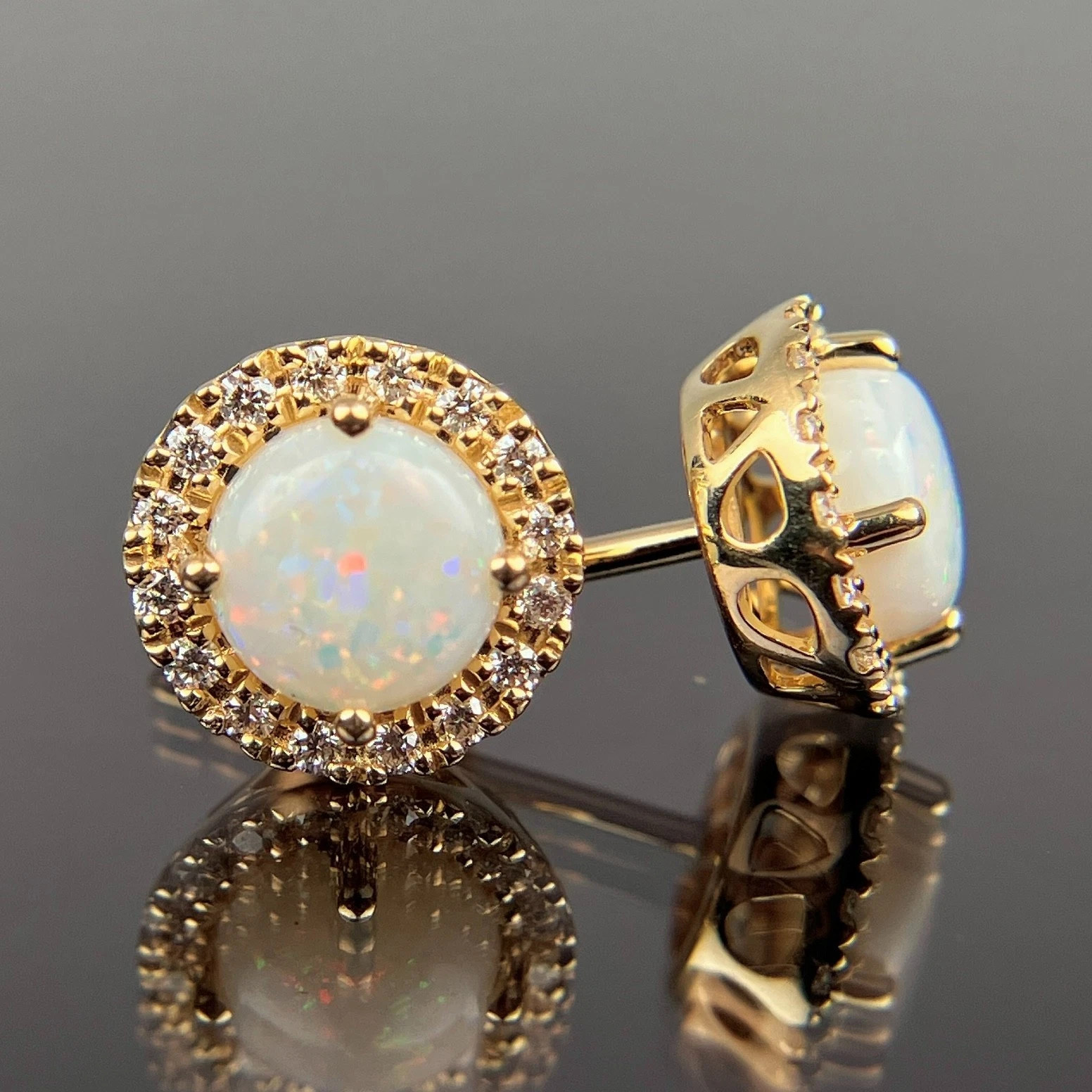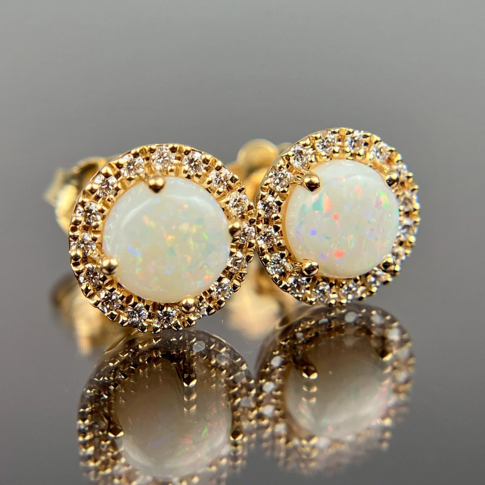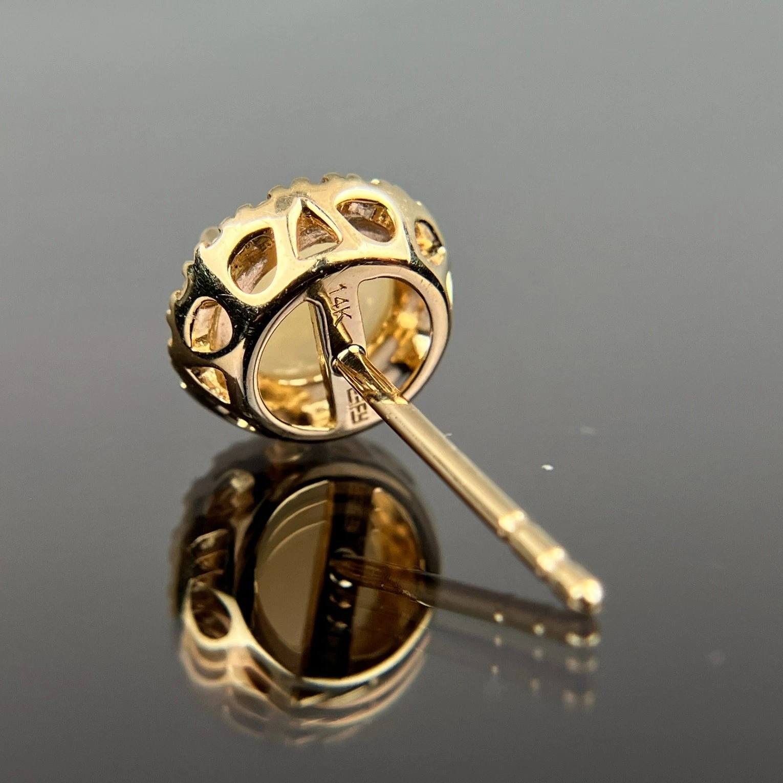 EFFY Aurora 14k Yellow Gold Diamond & Opal Halo Stud Earrings, 1.24 Grams, 7.8mm Earring Height, 0.87 Carats