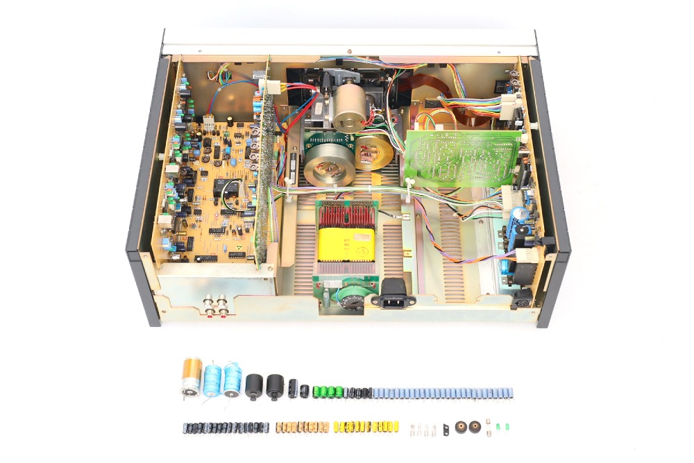 - Austausch von gealterten Elkos auf allen Platinen (siehe Foto unten)