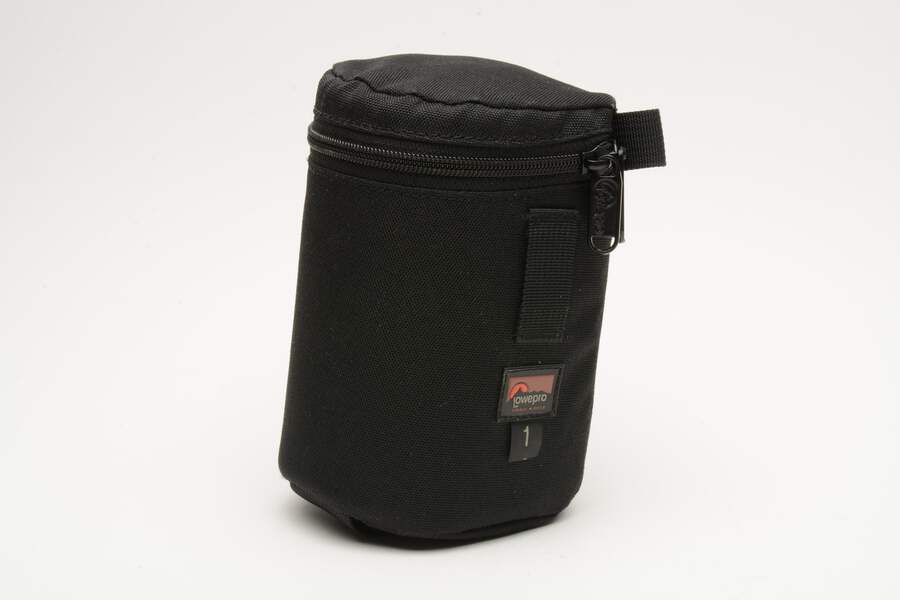 Excellent++ Condition Lowepro padded lens case #1 (Black) 6" tall x 3" diameter Very light signs of use Operates as new w/Velcro belt clip Nicely padded