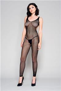 - Description: Circle net bodystocking features a scoop neck, thick shoulder straps, a cutout back, open feet and open crotch. Thong not included.