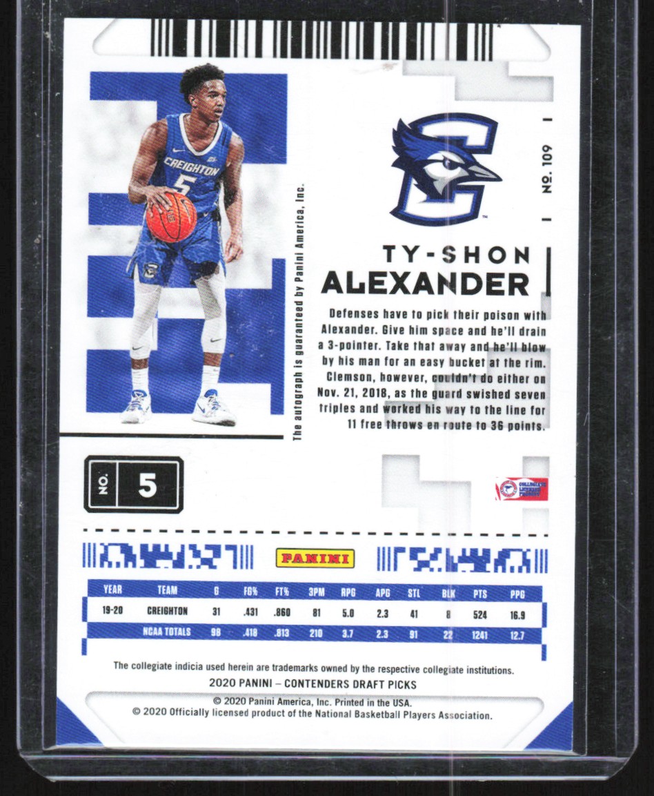 2020-21 Panini Contenders Draft Picks Game Ticket Ty-Shon Alexander Auto