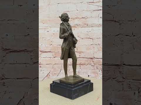 Expertly handcrafted using the traditional lost wax method, this sculpture is cast in 100% genuine bronze and finished with a rich brown patina that enhances its fine detailing and timeless appeal. From the texture of Mozart’s period attire to the meticulous shaping of his violin, each element showcases masterful artistry. The piece rests atop a polished black marble base, adding contrast and elegance while offering stability and distinction.