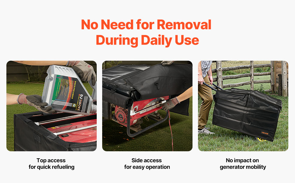 Easy Access Design: The top flap opens for quick refueling, while side openings allow hassle-free access to power controls—no need to detach the entire generator running cover. It makes routine use and maintenance easier than ever