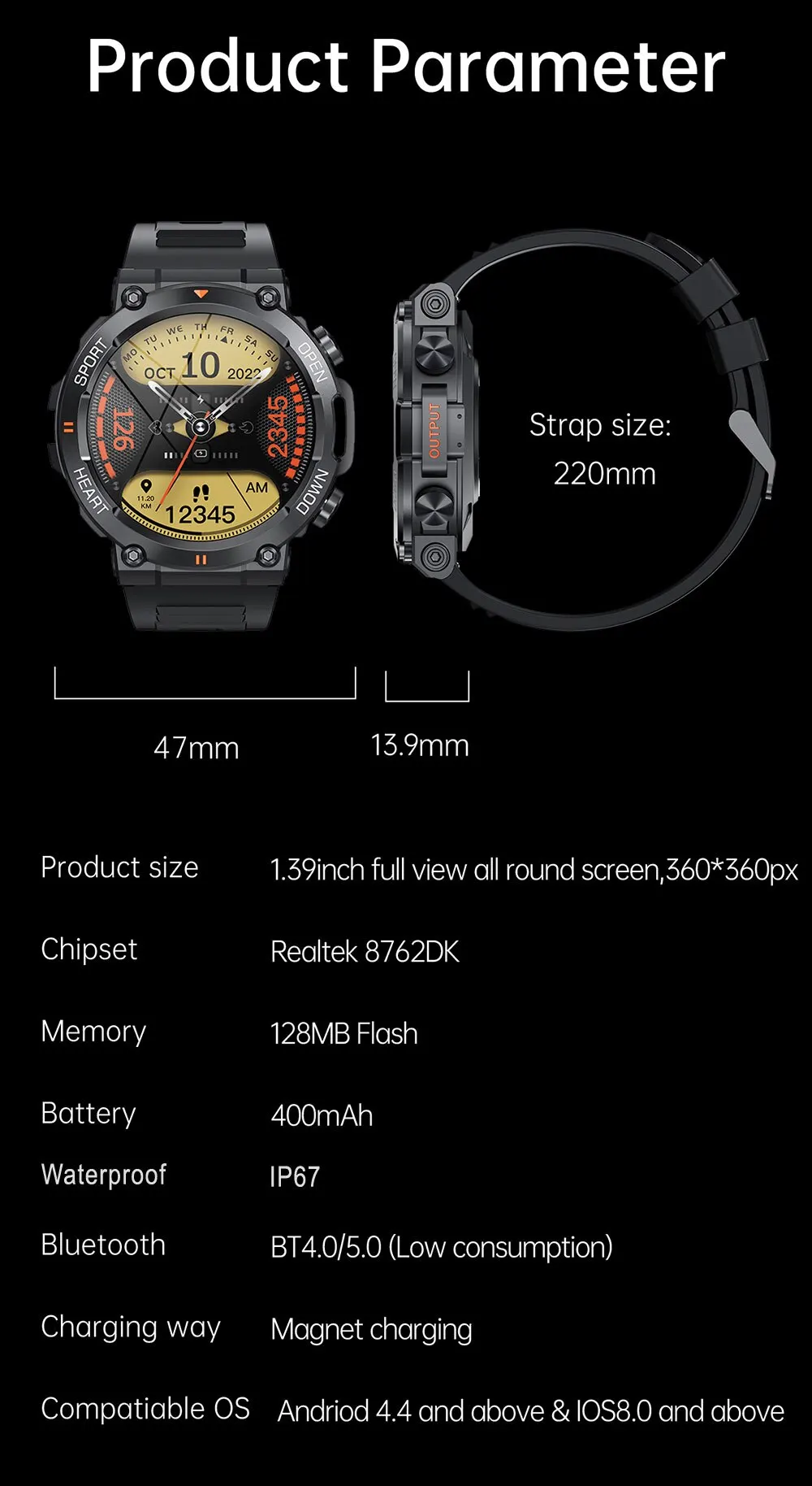 • HD Bluetooth Call Smart Watch :Make and receive calls directly from your wrist with HD voice quality.