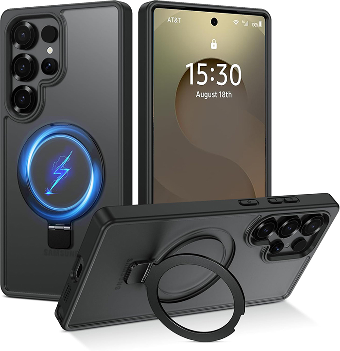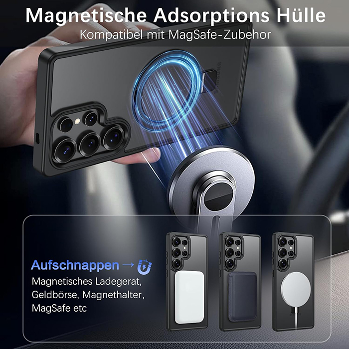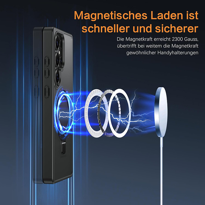 • [Supermagnetische Adsorption] Magnetisch fest am Ladegerät befestigen. Einmal einrasten, niemals verrutschen. Kompatibel mit MagSafe-Zubehör wie Geldbörse, Ringhalter und Powerbank. Darüber hinaus haben wir die starke Magnettechnologie mit einem klappbaren Kickständer kombiniert, verwandeln Sie ihn in einen versteckten Magnetständer, der sich bei Nichtgeb.
