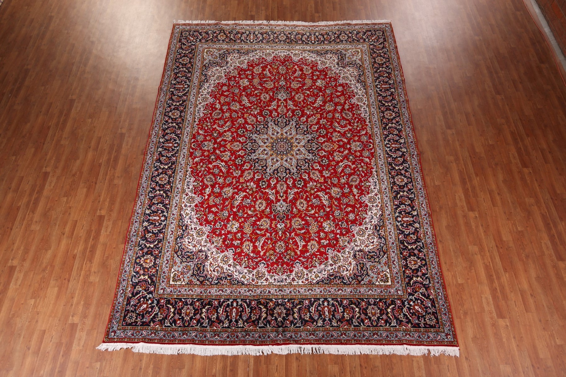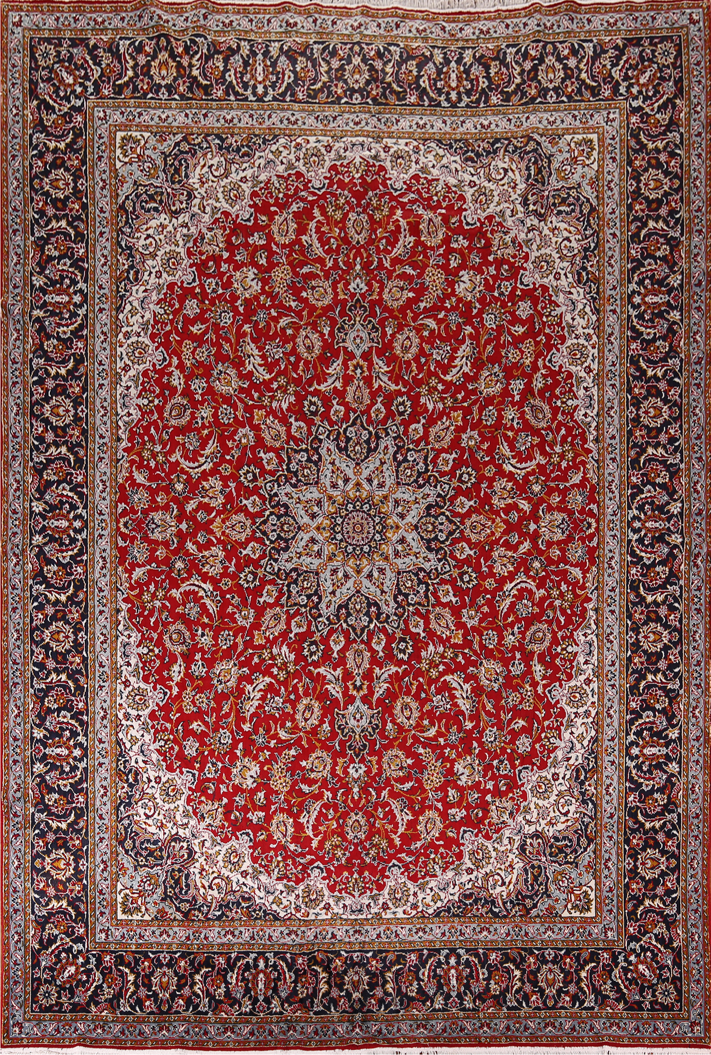 Tapis turc rouge floral 9x13, médaillon traditionnel, taille de pièce, tapis classique