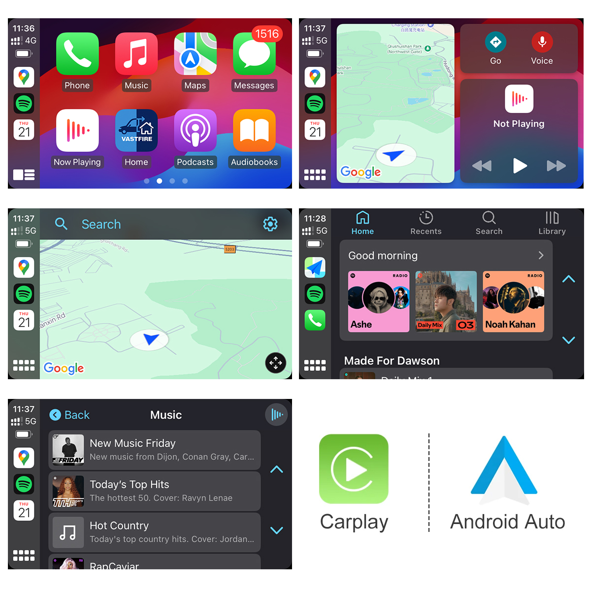 CarPlay & Android Auto Audio funktioniert über Auto-AUX (USB-AUX-Adapter) und Bluetooth