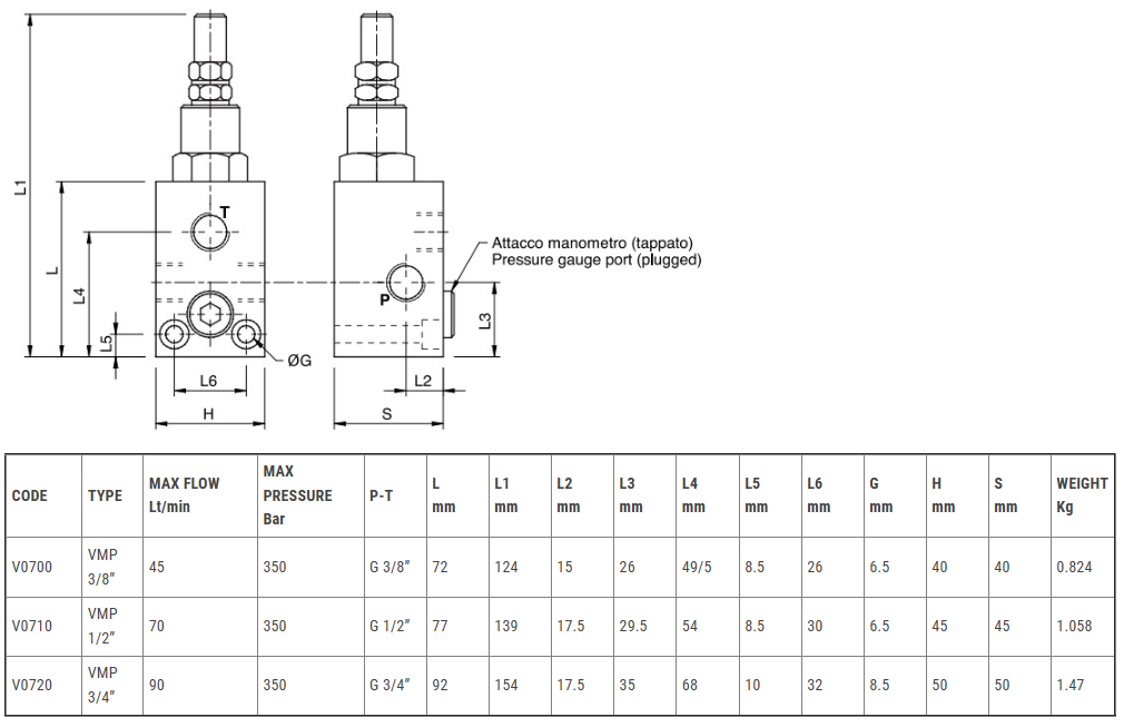 - BUCHER 1/2" 45-70L/MIN VALVES